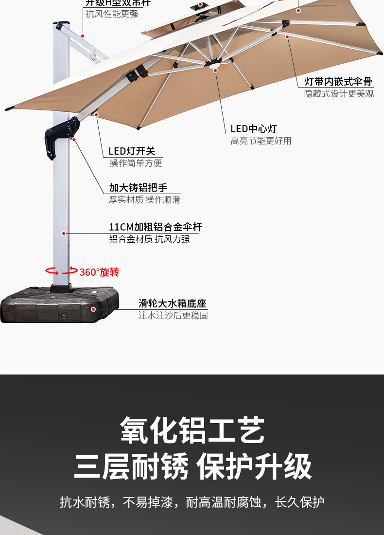 • [더블 폴] 플래그십 램프 비드 모델: 11CM 항공 알루미늄 폴 + 3m 및 190kg 물 탱크