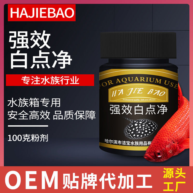 Hajiebao 검은 병 100g 흰색 점 그물 썩은 피부와 썩은 꼬리 흰색 점 장식용 물고기를위한 비 수의학