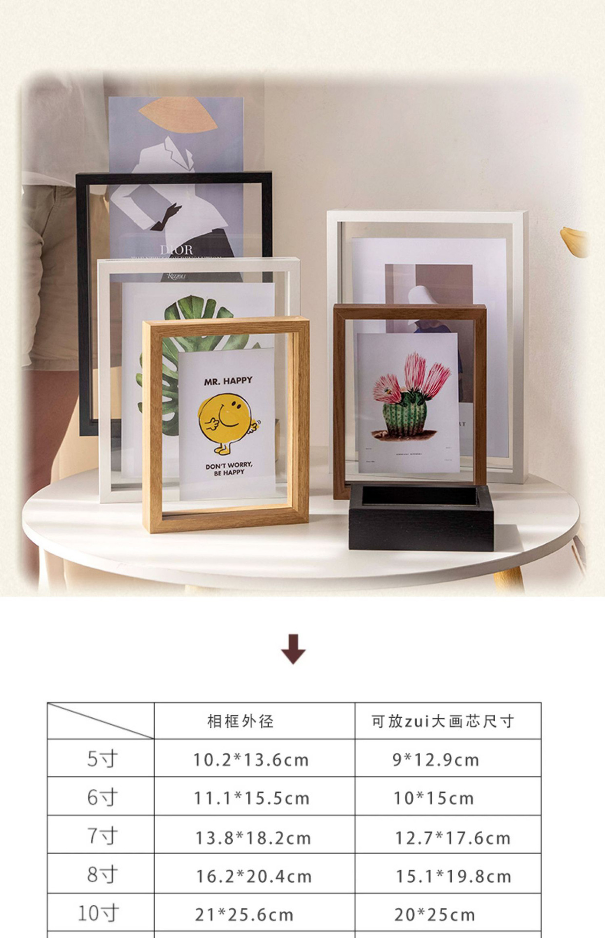 양면 투명 사진 프레임 유리 a4 프레임 장착 프레임 7 인치 표본 아크릴 사진 프레임 테이블 6 인치 프레임스토어 가기