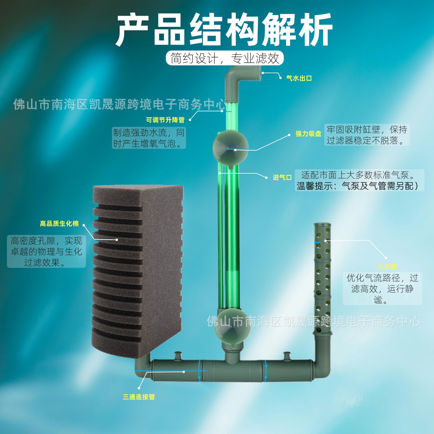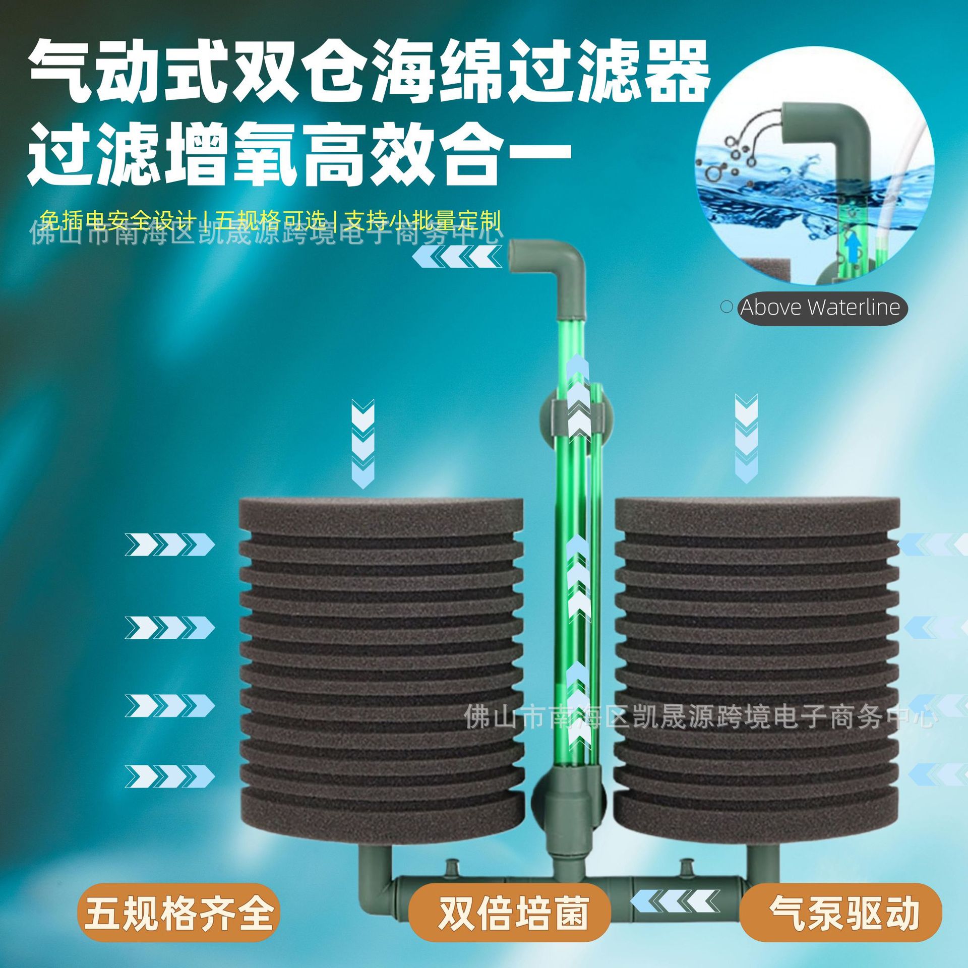 크로스보더 공압식 물요정 필터, 어항 필터, 무소음 벽걸이 필터, 배양용 물요정 필터재