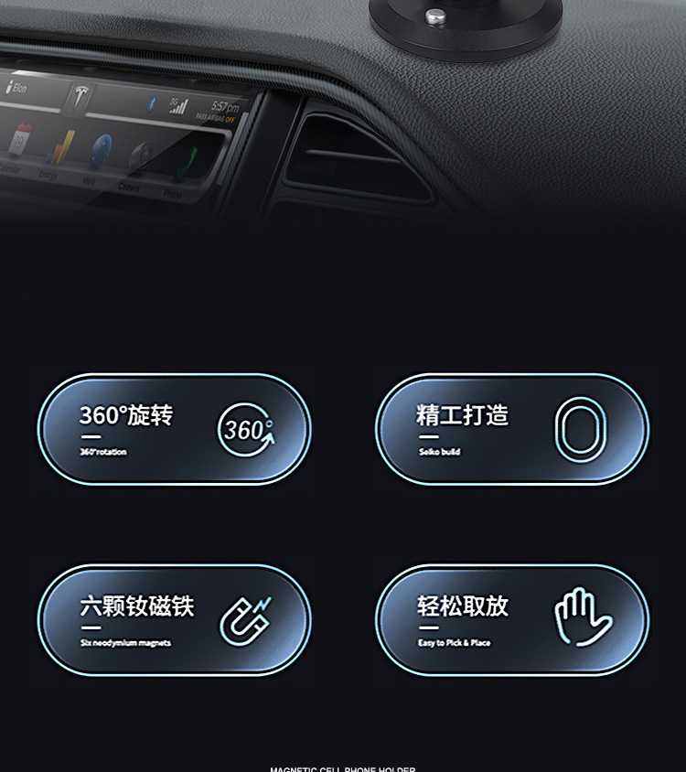 새로운 초강력 자기 흡입 자동차 휴대폰 브래킷 위아래 조정 좌우 회전 접이식 계기판 내비게이션 브래킷