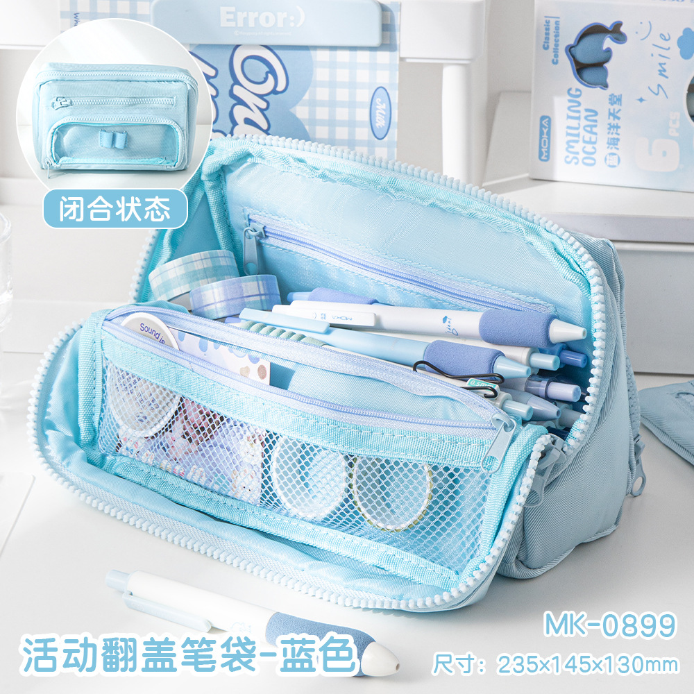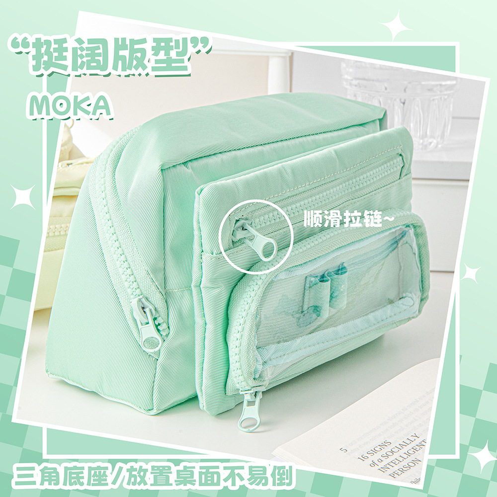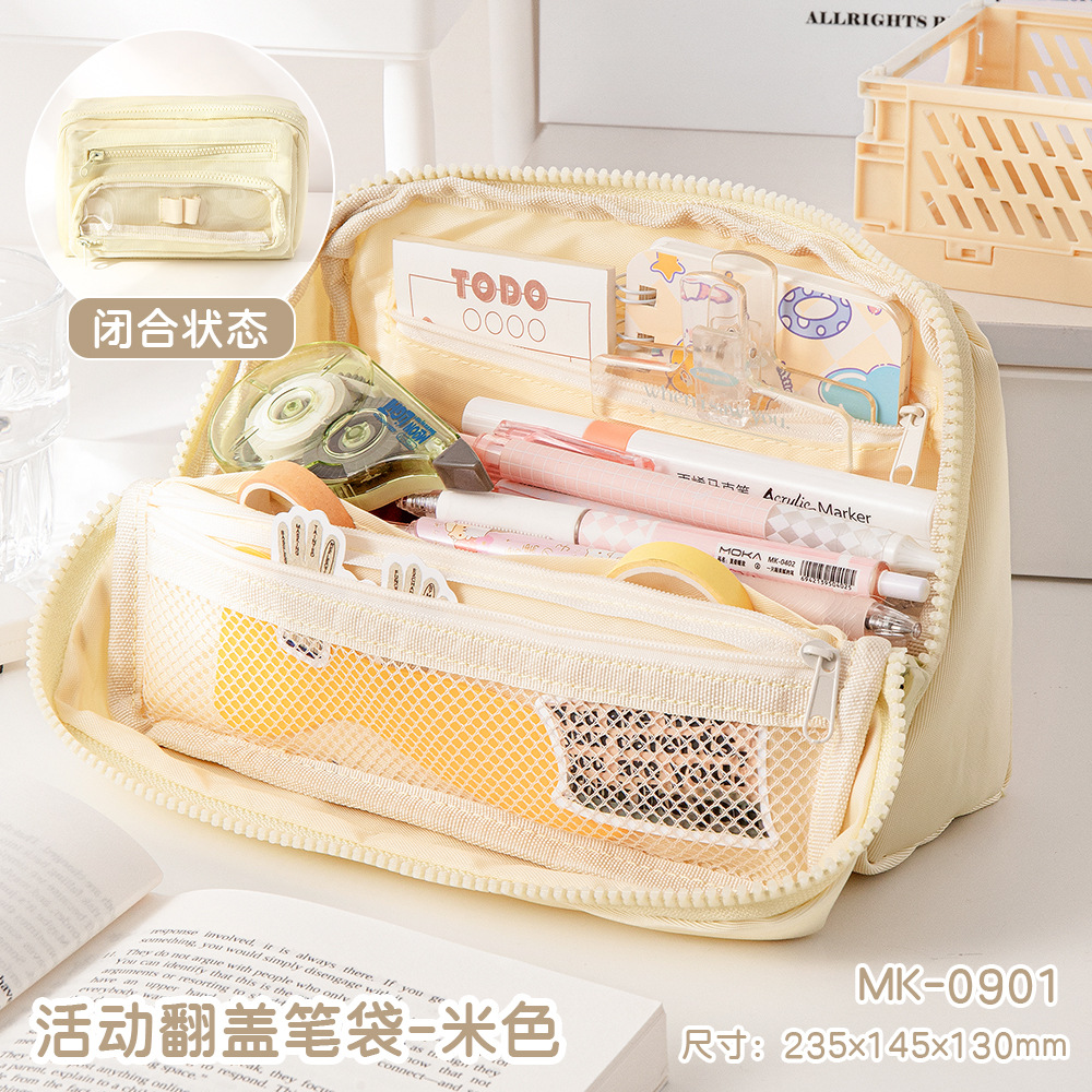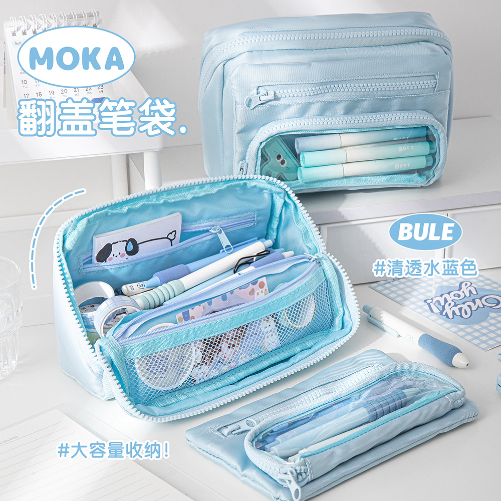 MOKA 대용량 연필 가방 신선한 스타일 INS 스타일 연필 상자 간단한 다층 플립 연필 가방 캔버스 문구 상자스토어 가기