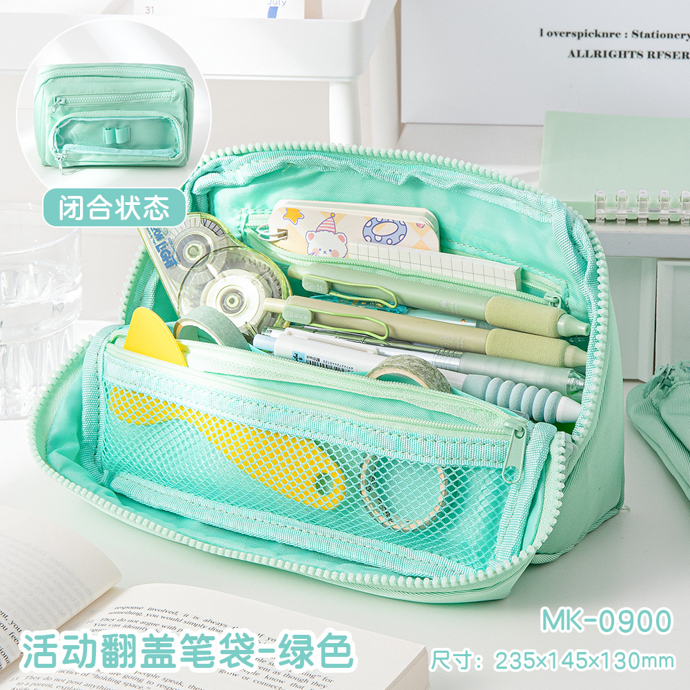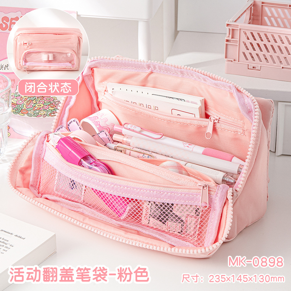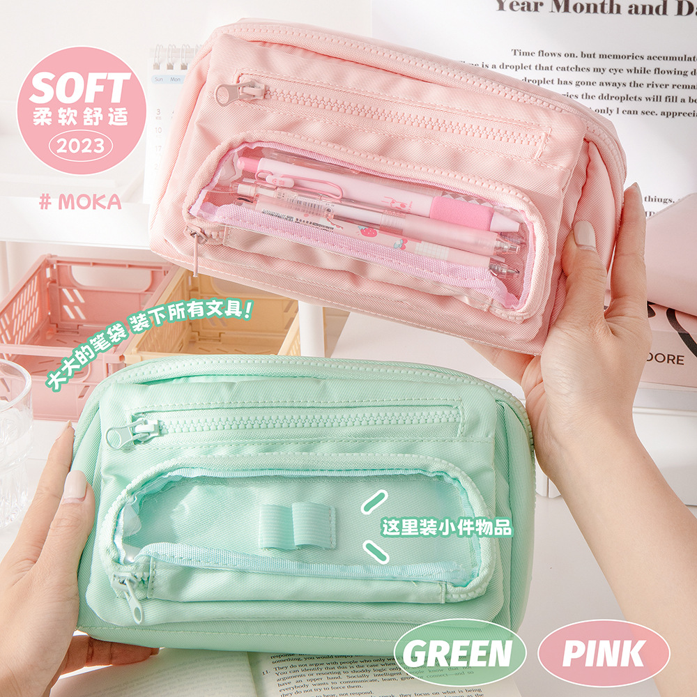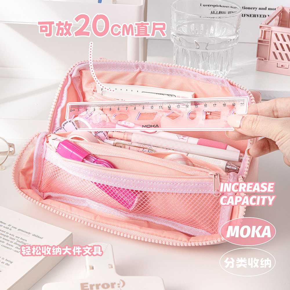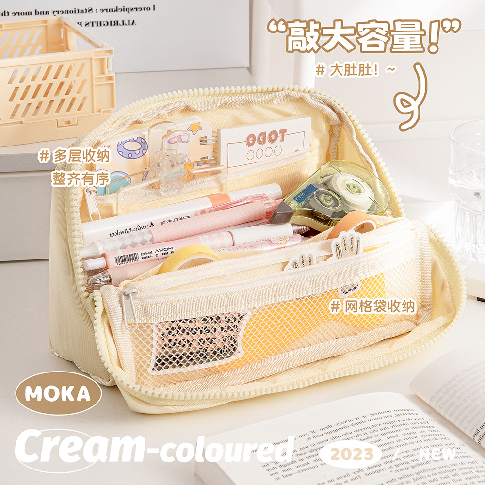 MOKA 대용량 연필 가방 신선한 스타일 INS 스타일 연필 상자 간단한 다층 플립 연필 가방 캔버스 문구 상자스토어 가기