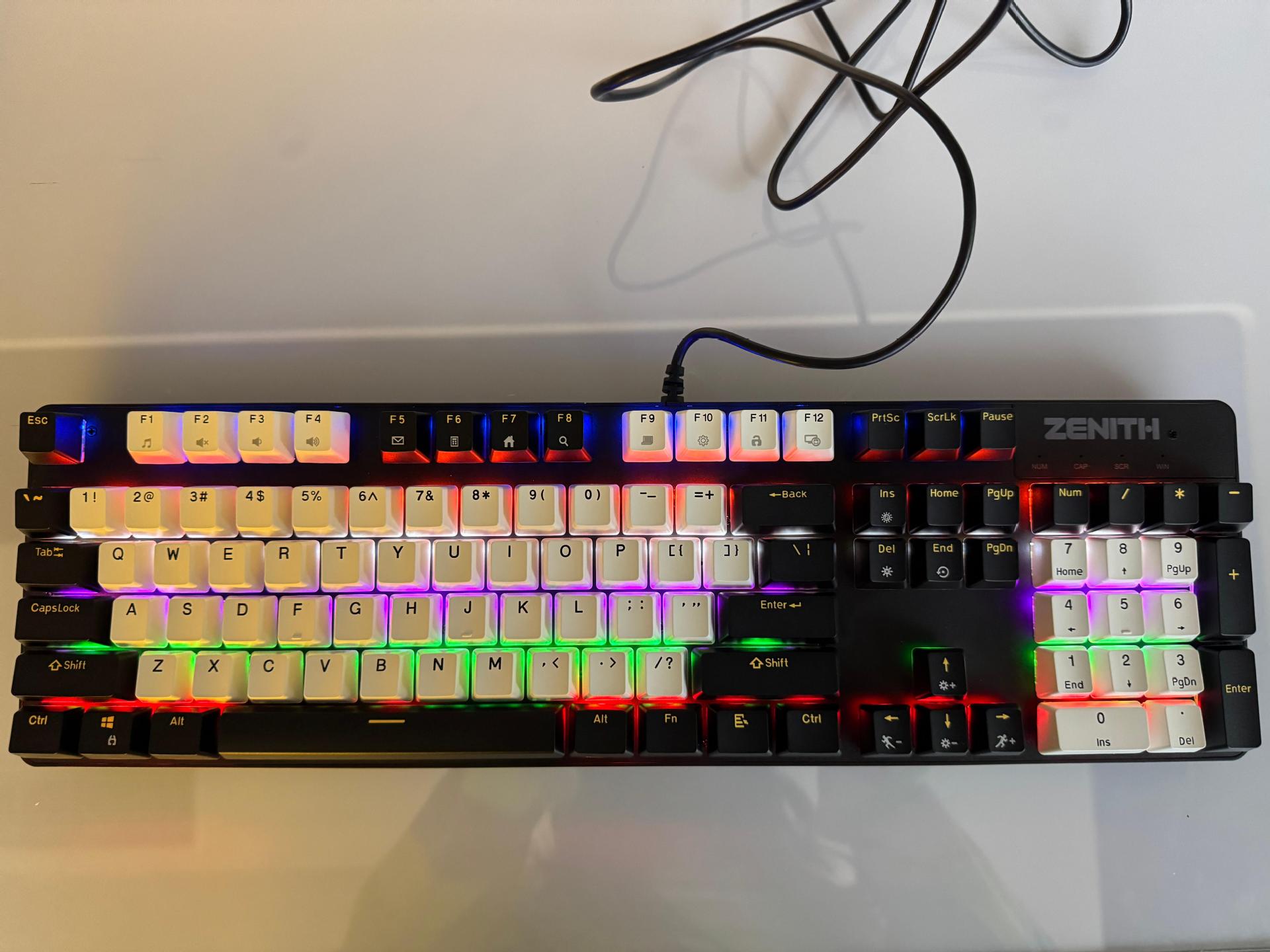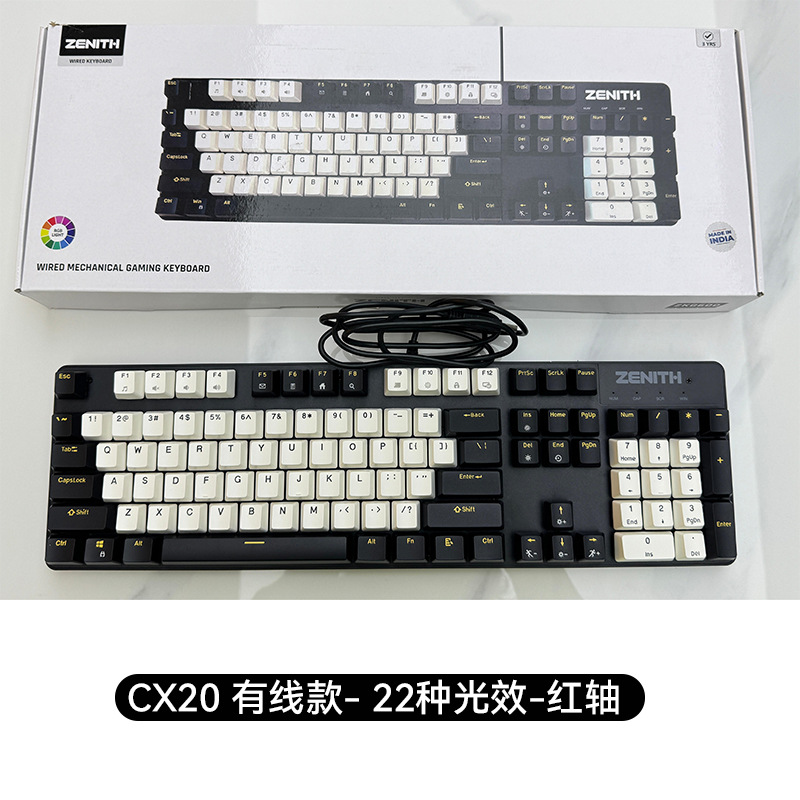 【CX20 104键青轴 塑胶面板】-黑白色-彩虹光-有线