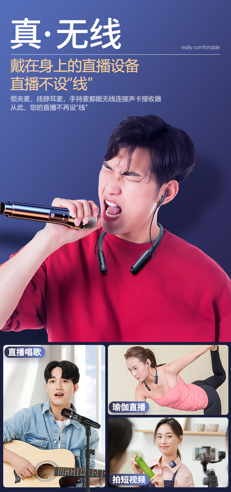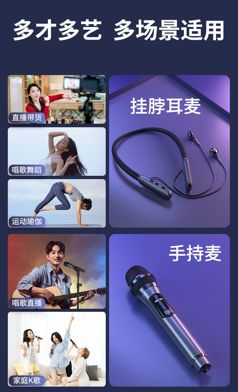 • [싱글 라이브 방송/노래 버전] 행잉넥 마이크 + 휴대용 마이크 [듀얼 플러그 수신기]