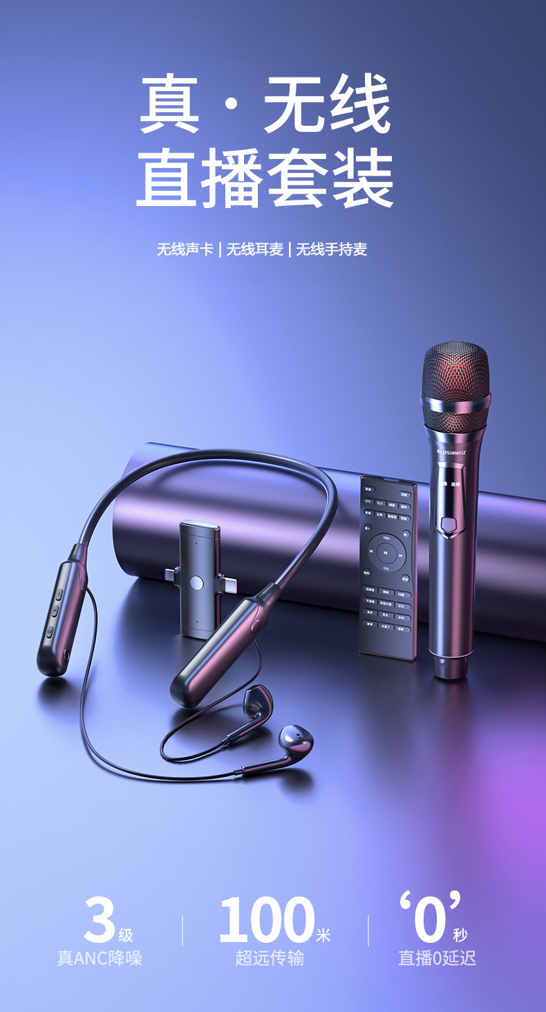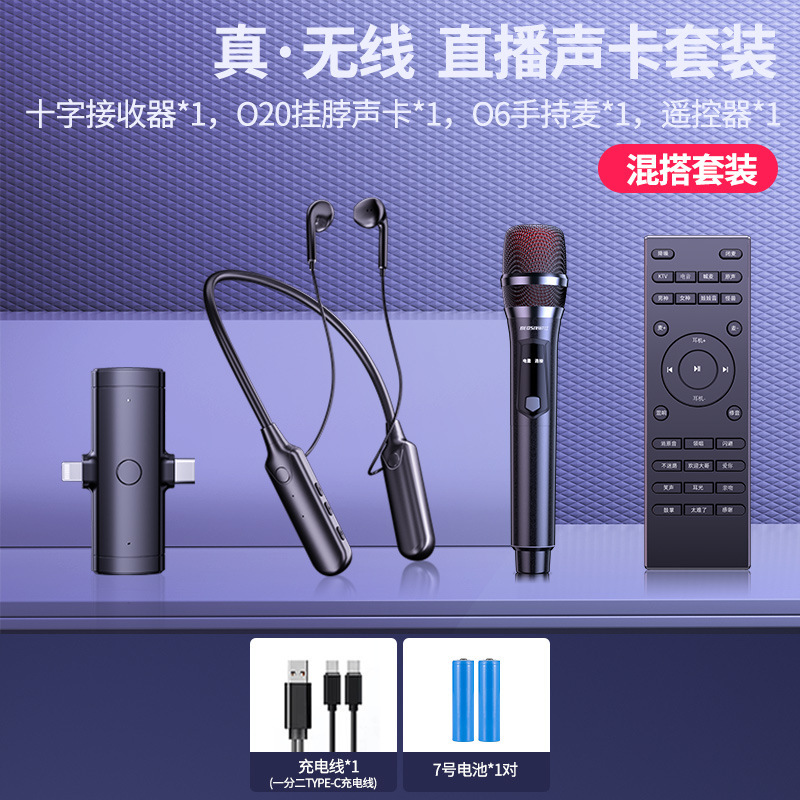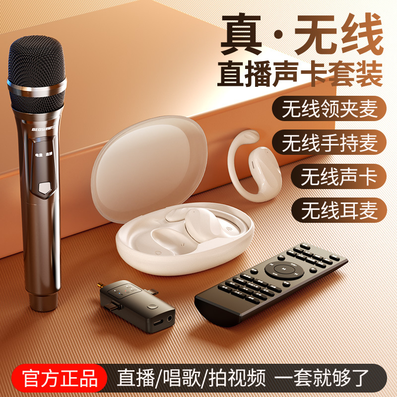 무선 사운드 카드 라이브 방송 장비 전체 마이크 네트워크 빨간 노래 블루투스 반주 소음 감소 라디오 미니 마이크 세트