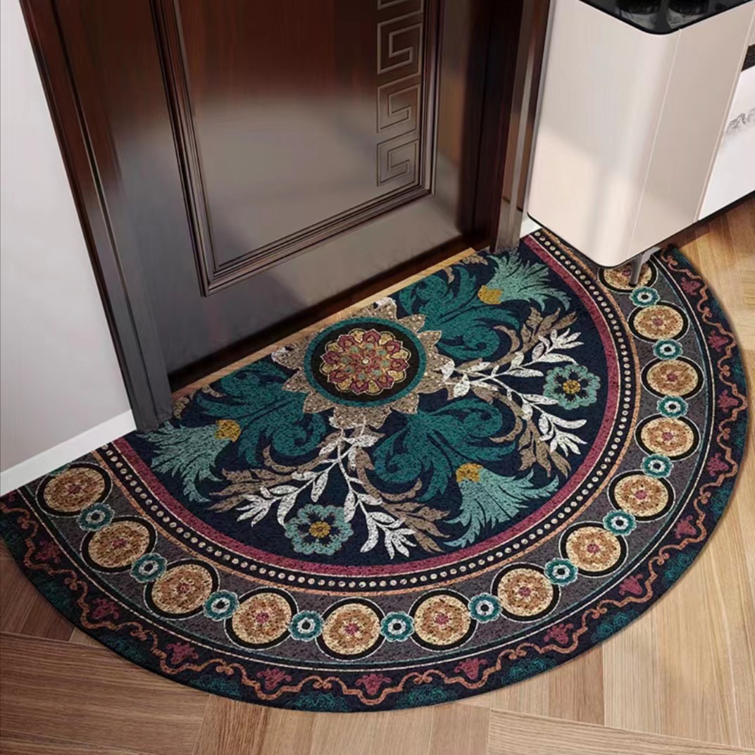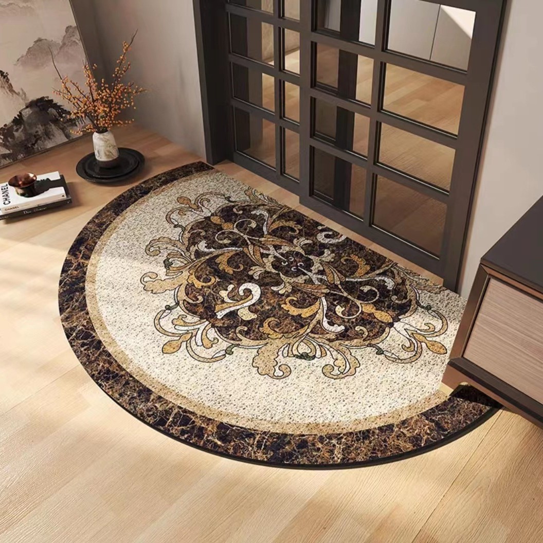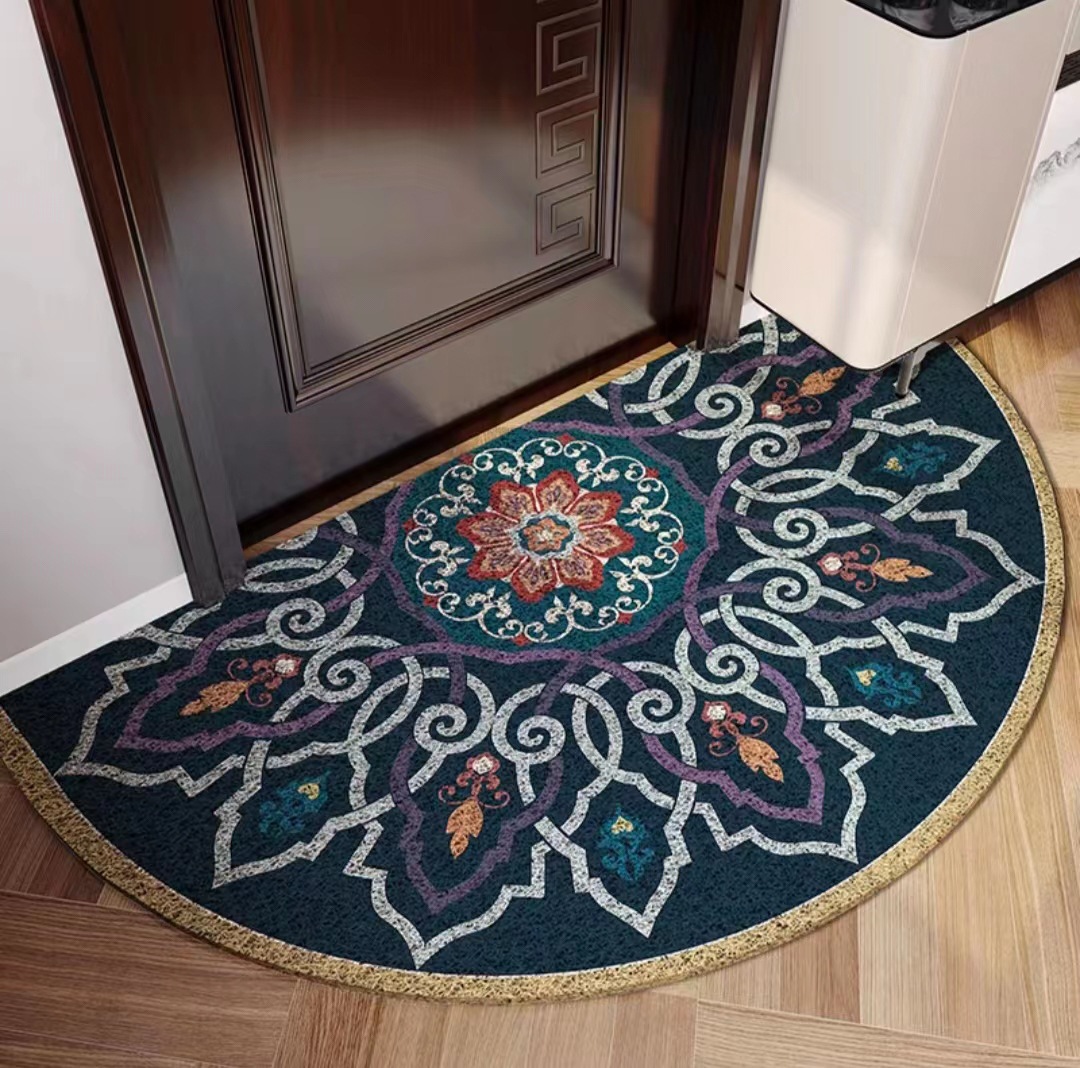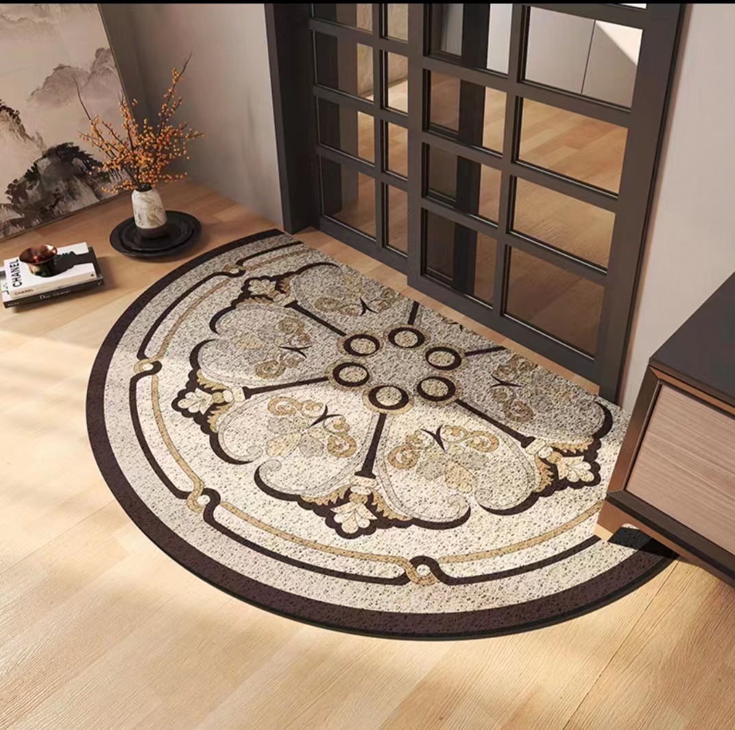 유럽식 거실 입구 매트 PVC 실크 서클 발 매트 반원형 먼지 제거 미끄럼 방지 도어 매트 가정용 절단
