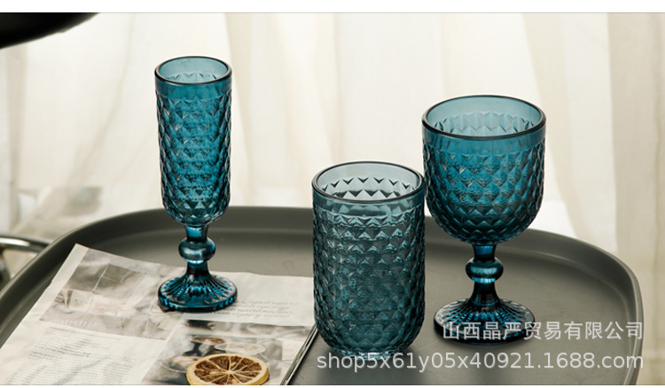 • 블루 크리스탈 다이아몬드 작은 와인 잔