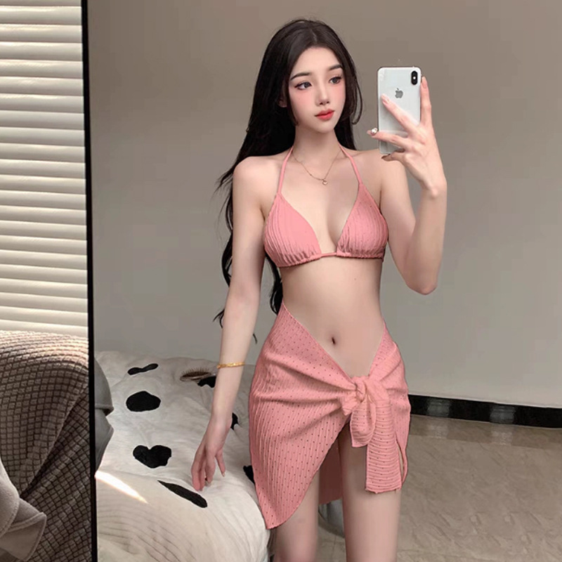 섹시한 비키니 수영복 여성용 비키니 스플릿 쓰리피스 세트 여름 요정 스타일 해변 휴가 여성용 온천 수영복