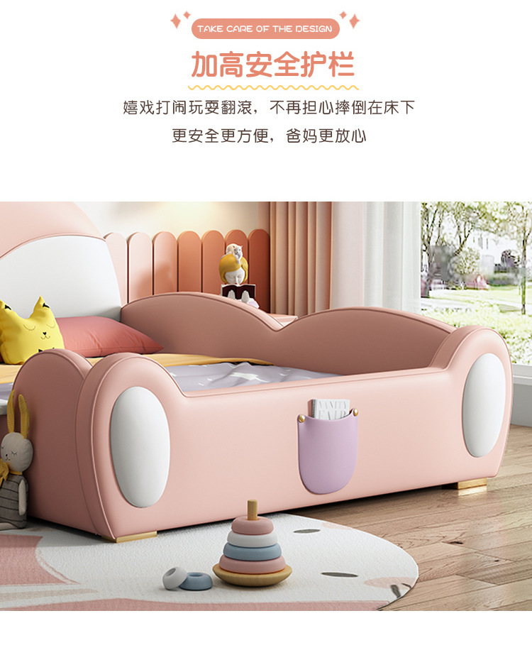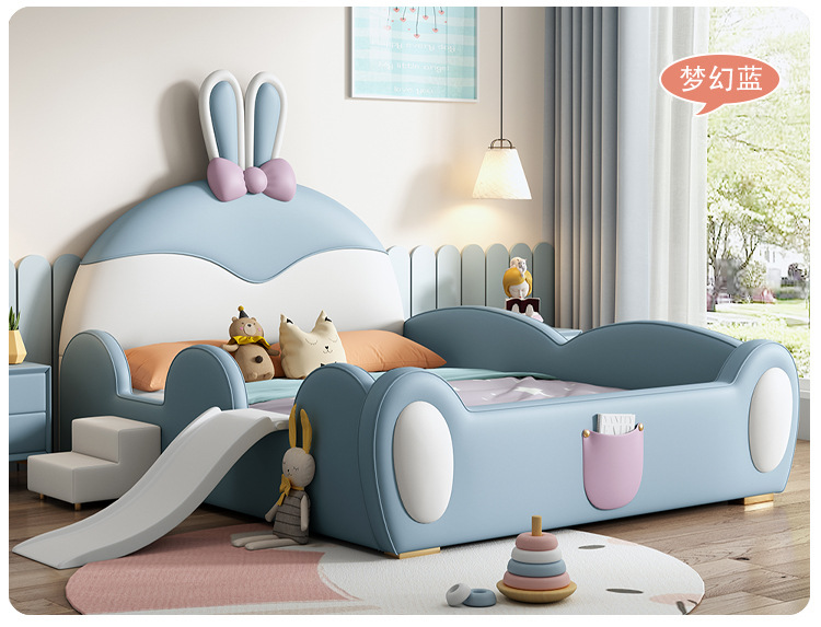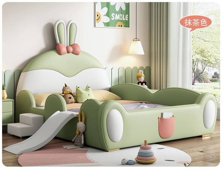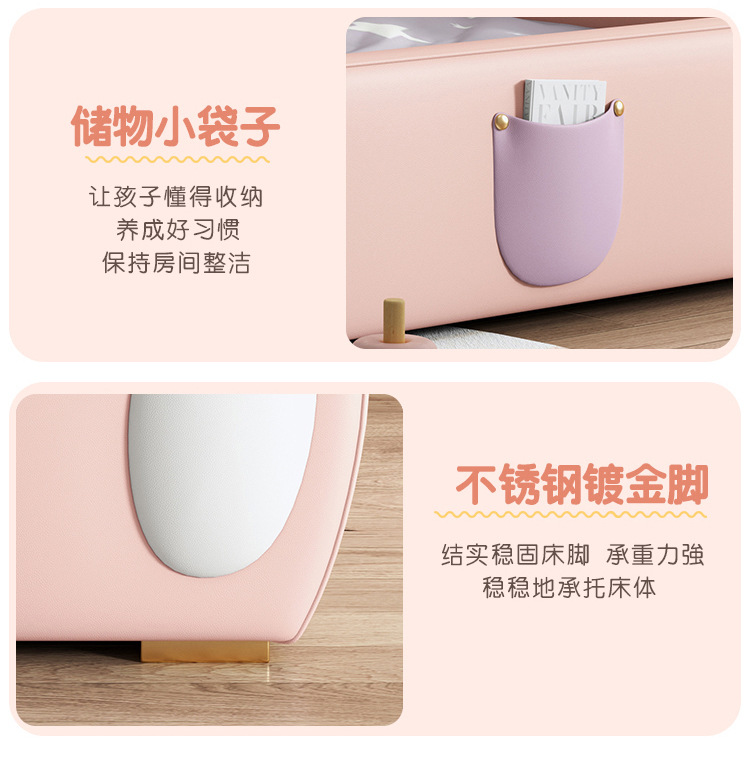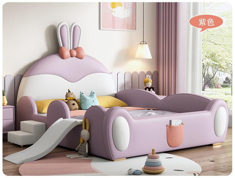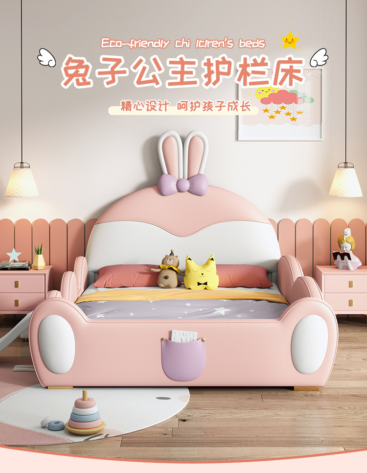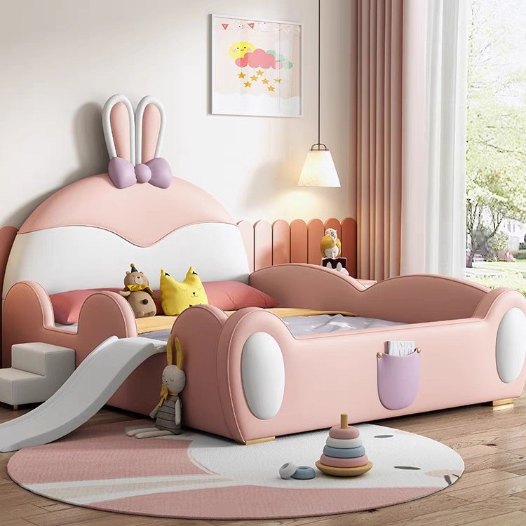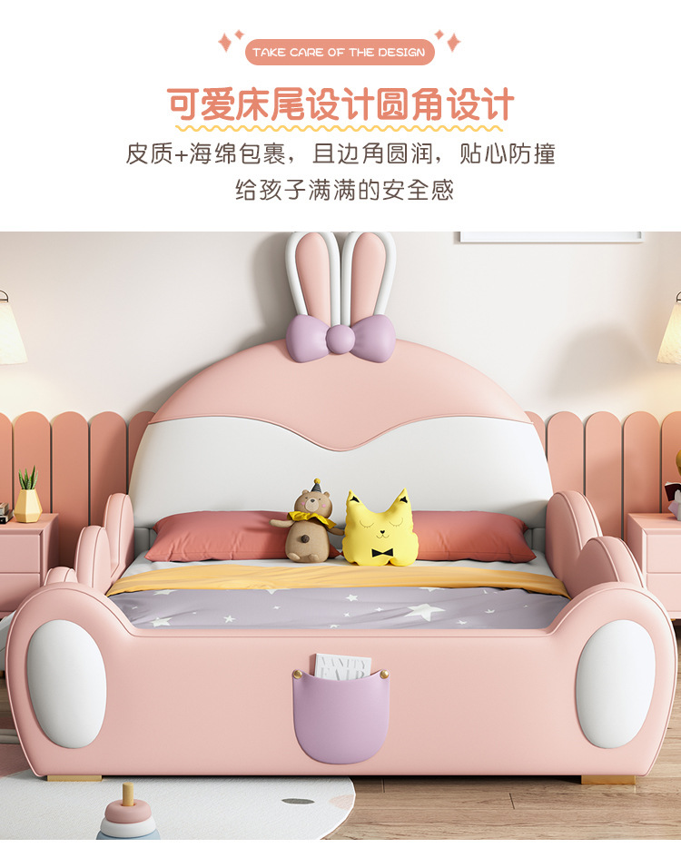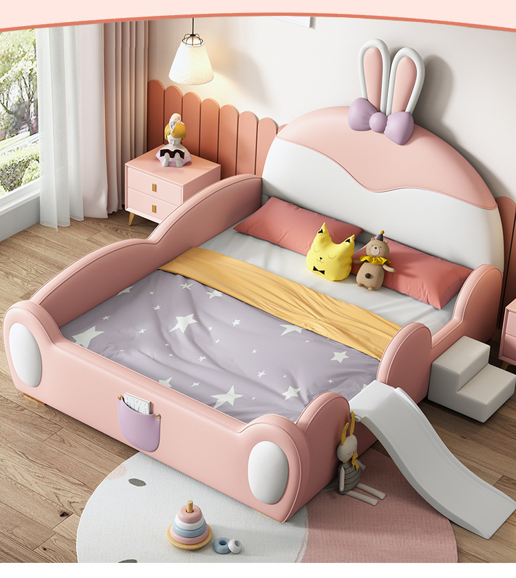 슬라이드 난간 항목과 핑크 어린이 침대 토끼 귀 럭셔리 단단한 나무 소녀 공주 소녀 어린이 방 부드러운 가방 침대