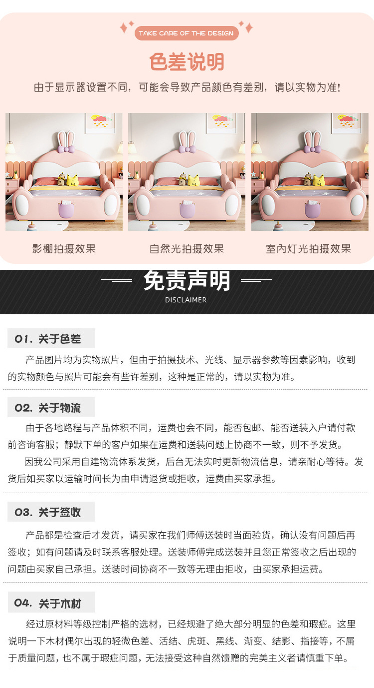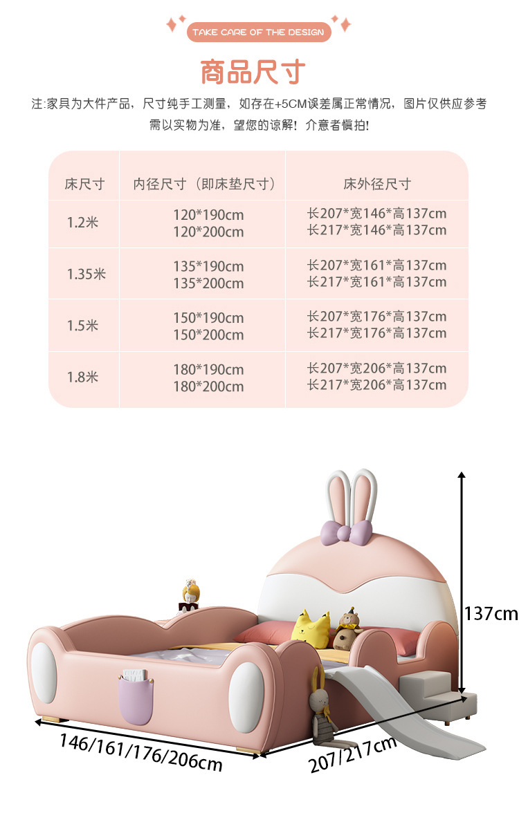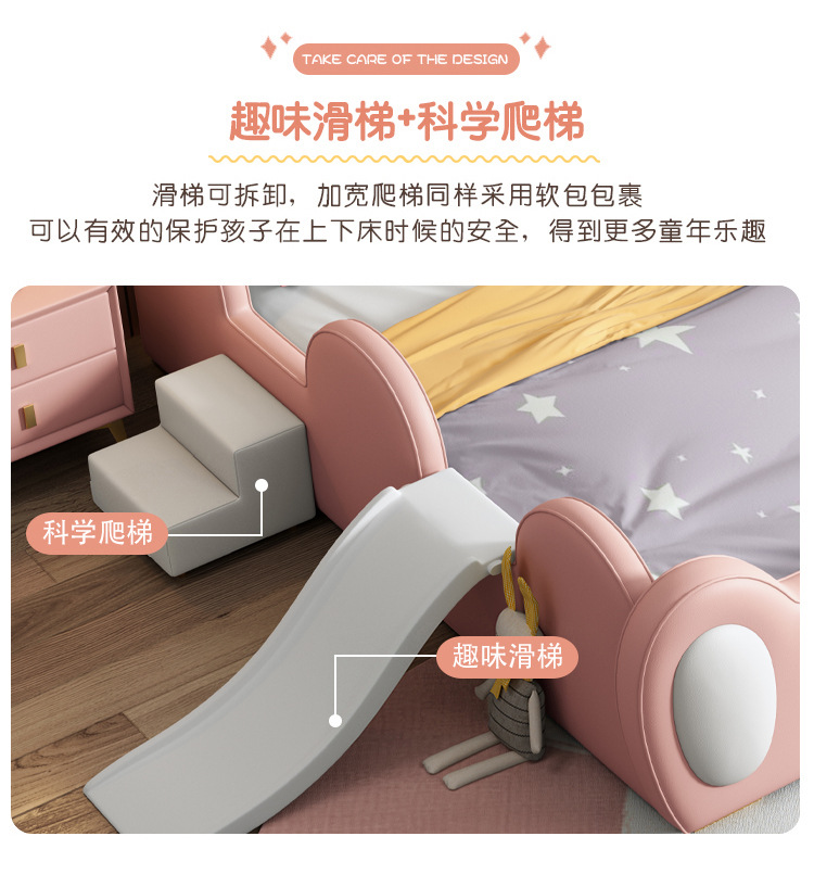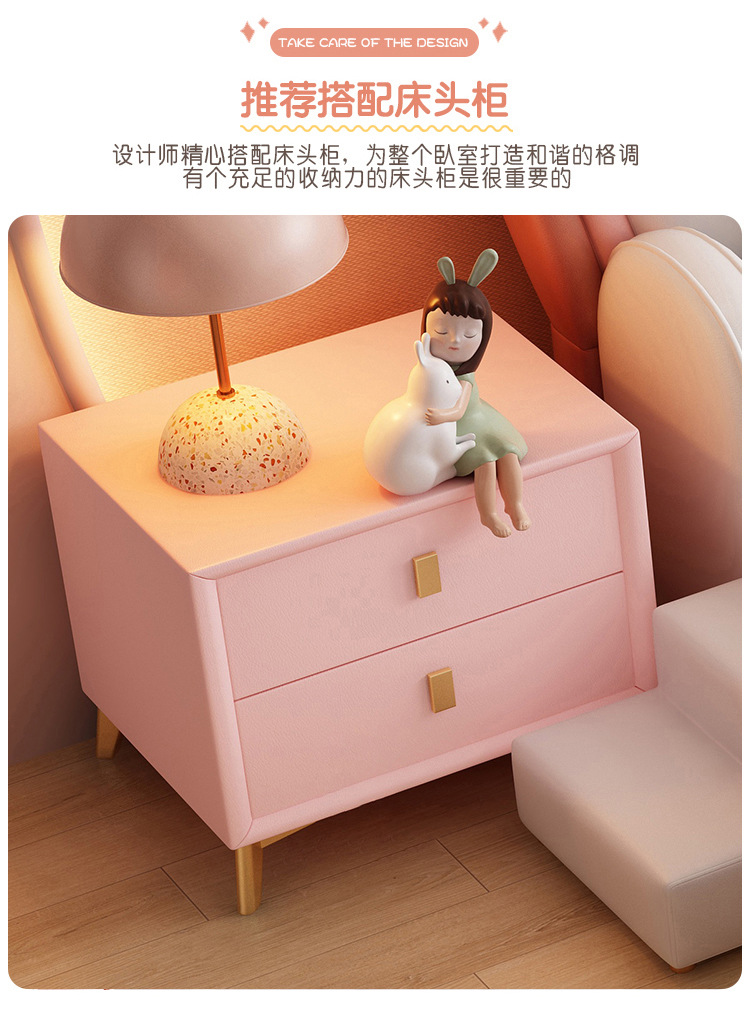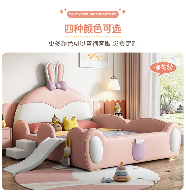 슬라이드 난간 항목과 핑크 어린이 침대 토끼 귀 럭셔리 단단한 나무 소녀 공주 소녀 어린이 방 부드러운 가방 침대스토어 가기