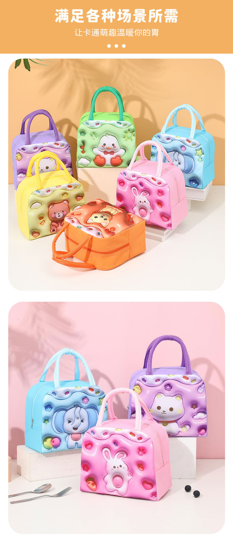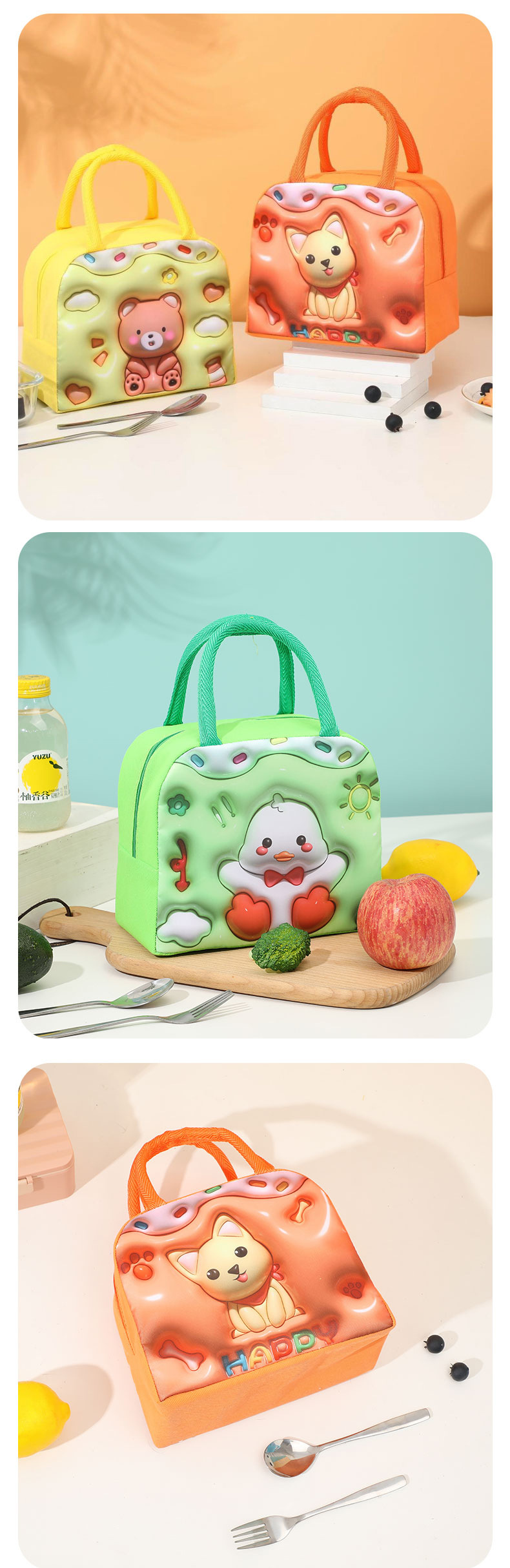 3D 만화 단열 가방 어린이 휴대용 도시락 가방 두꺼운 알루미늄 호일 보 절연 가방 나가는 휴대용 귀여운 도시락 가방스토어 가기