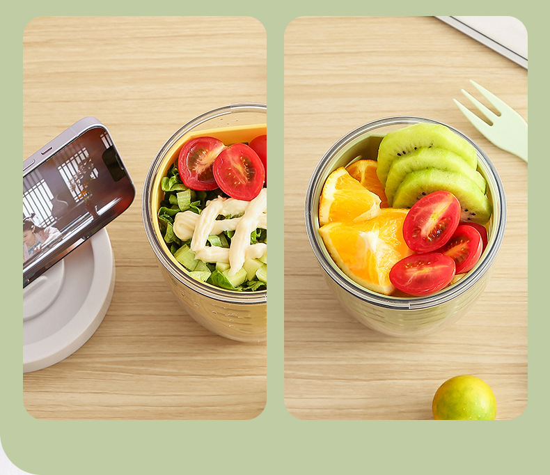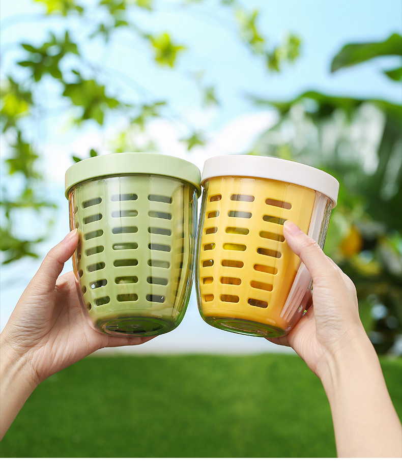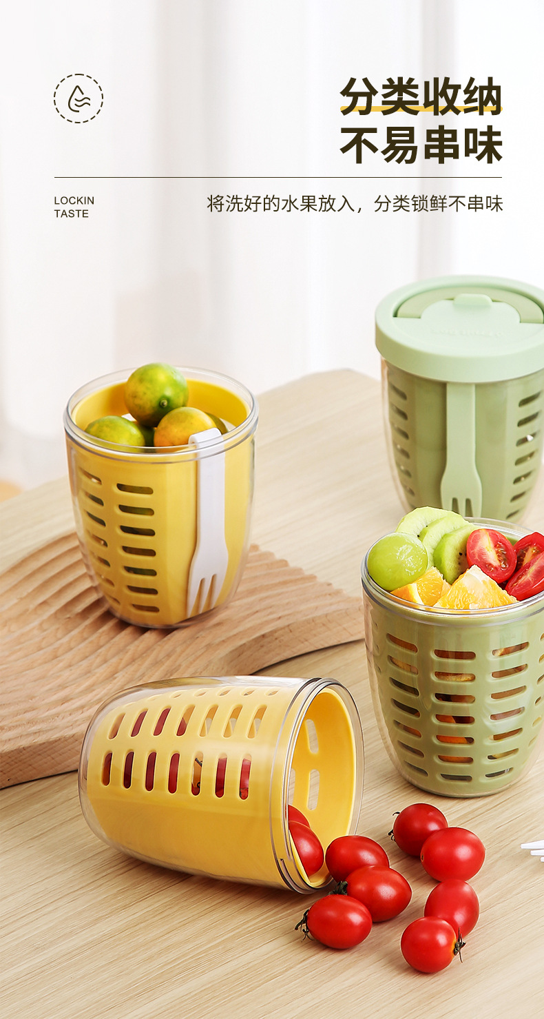 더블 레이어 과일 상자 배수 사무실 근로자를위한 신선한 보관 상자 휴대용 라운드 주방 과일 상자 배수 상자 도시락스토어 가기