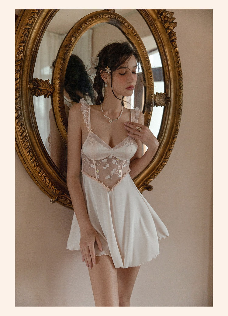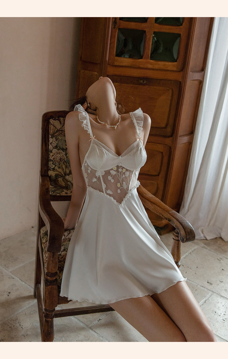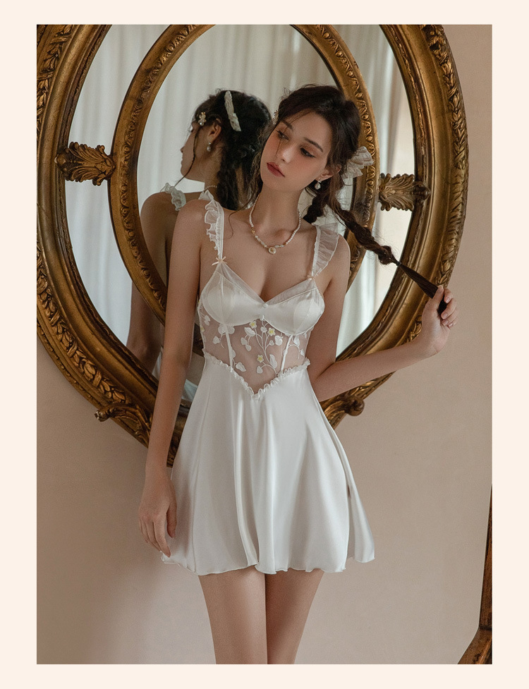 가을 2023 새로운 새틴 섹시한 잠옷 여성용 Tmall 원래 O 프랑스 고급 잠옷 가슴 패드 순수한 욕망 스타일스토어 가기