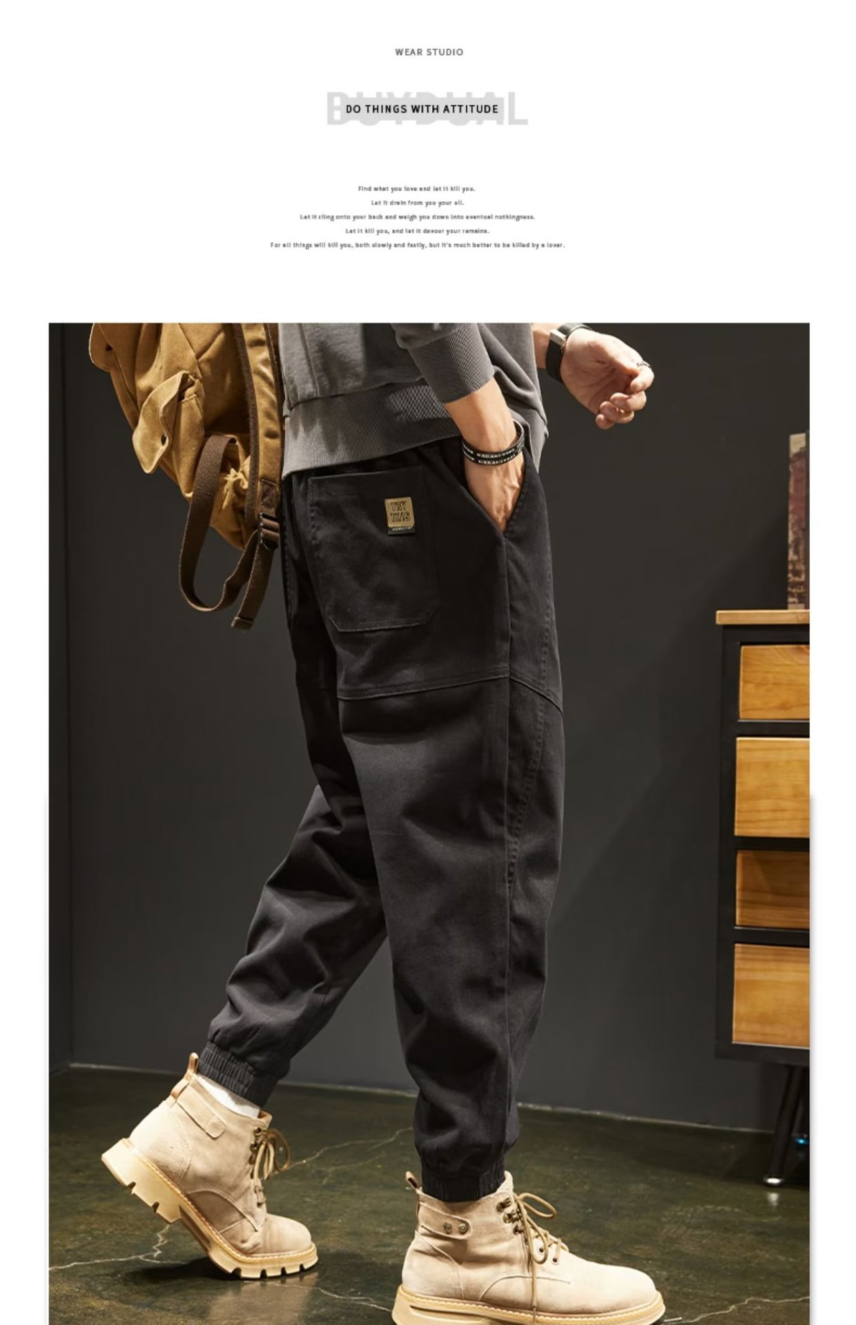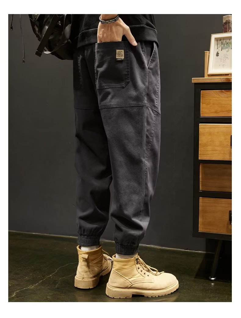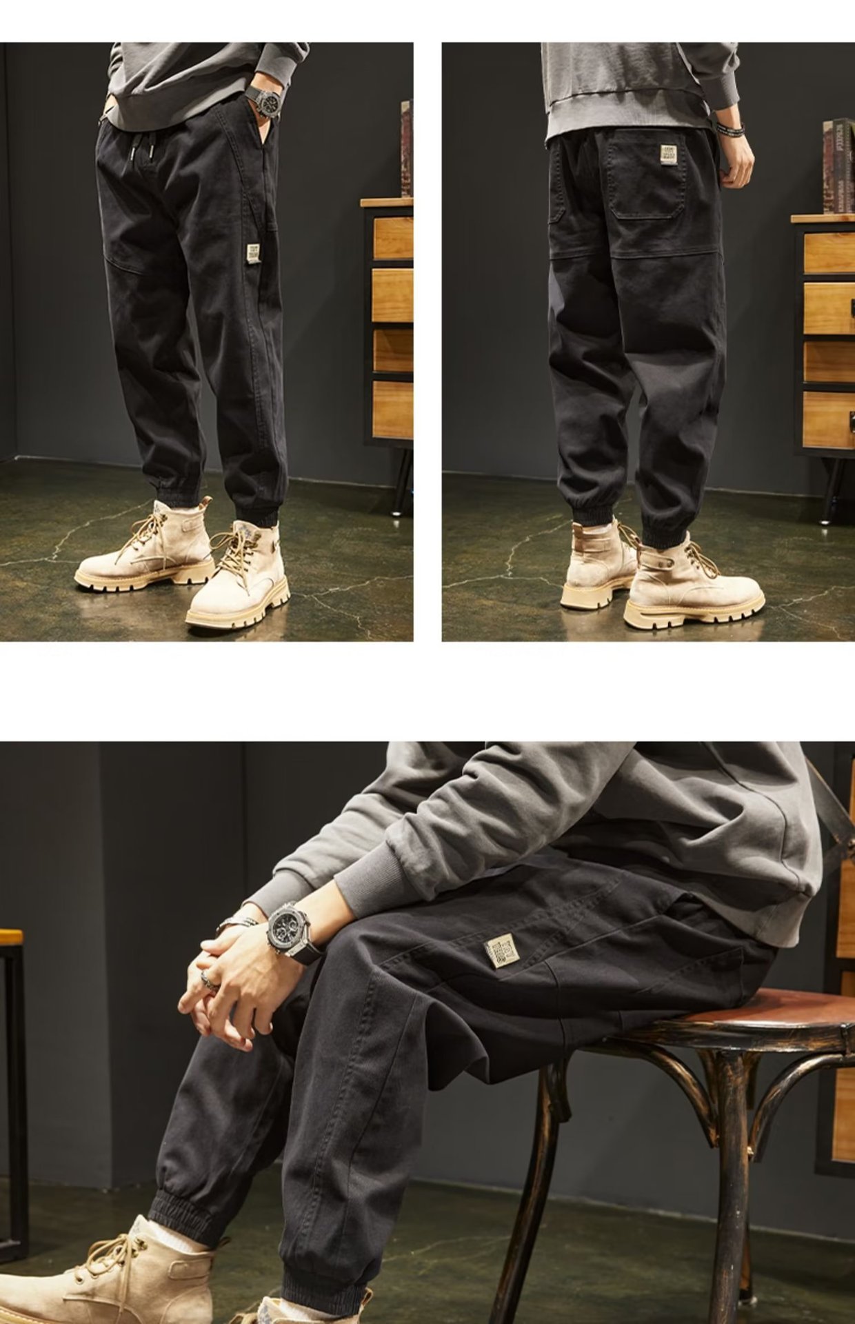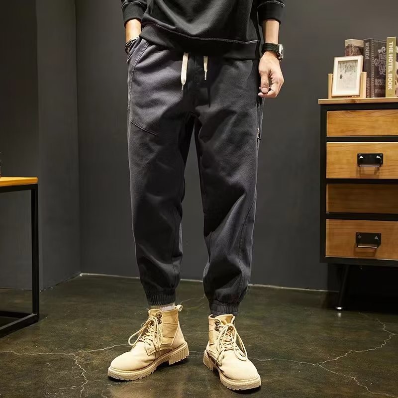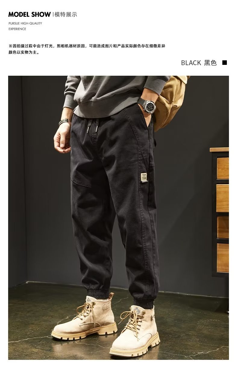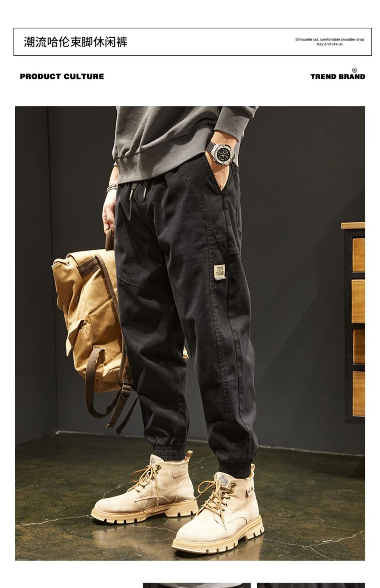 가을 검은 캐주얼 바지 남성 패션 브랜드 느슨한 발목 묶인 바지 봄과 가을 긴 바지 소년 가을과 겨울스토어 가기