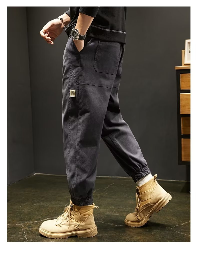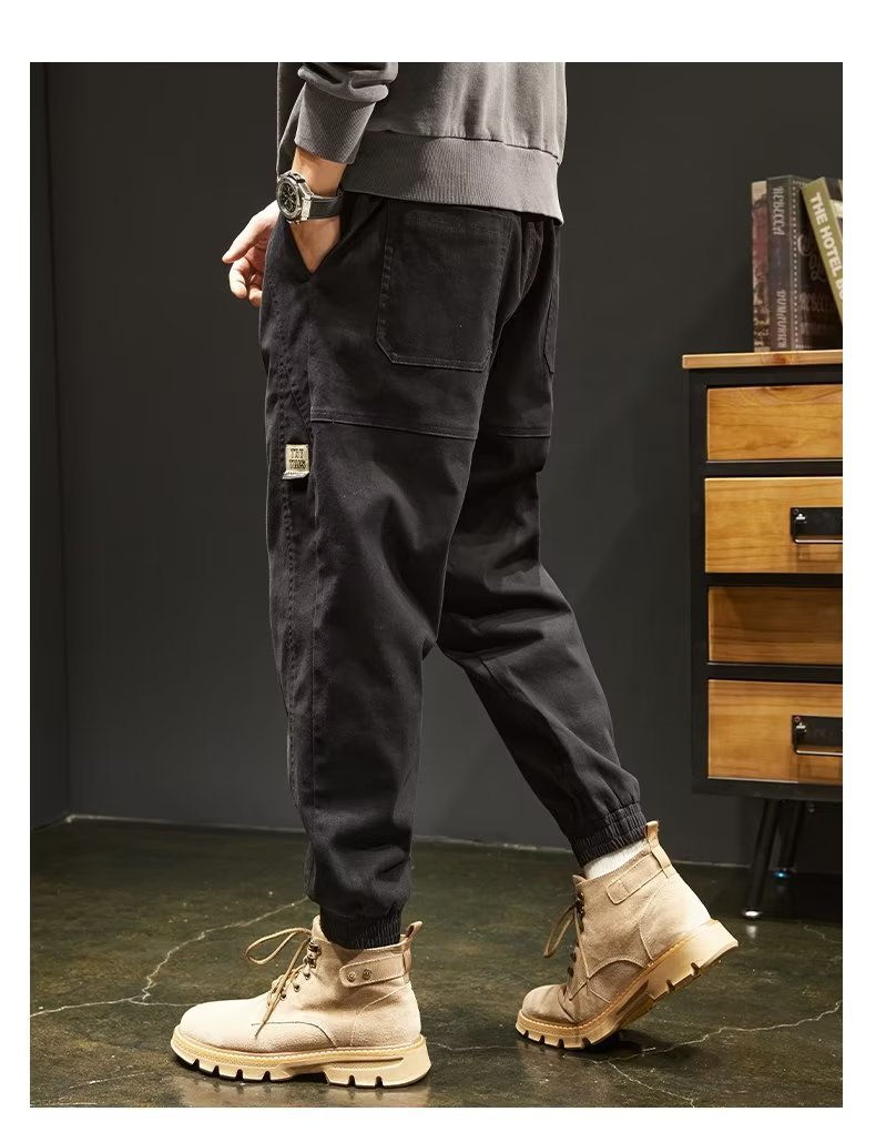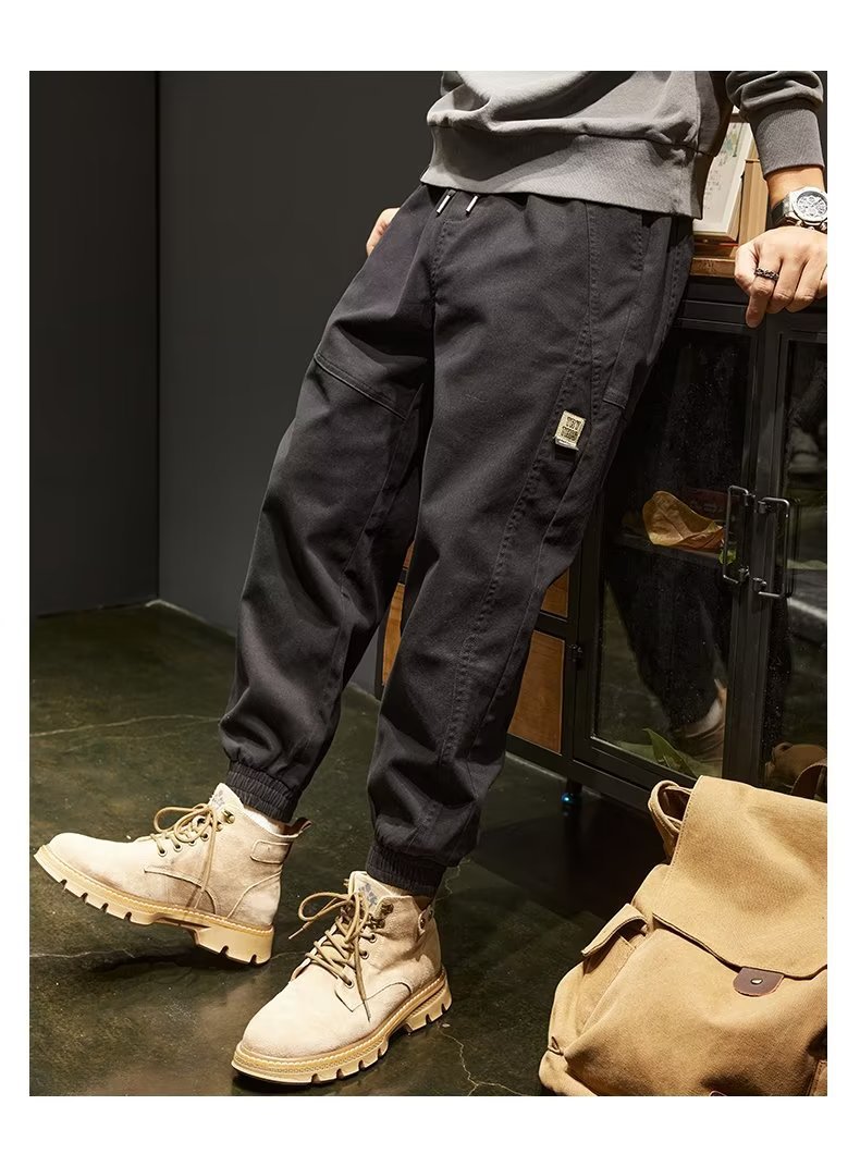 가을 검은 캐주얼 바지 남성 패션 브랜드 느슨한 발목 묶인 바지 봄과 가을 긴 바지 소년 가을과 겨울