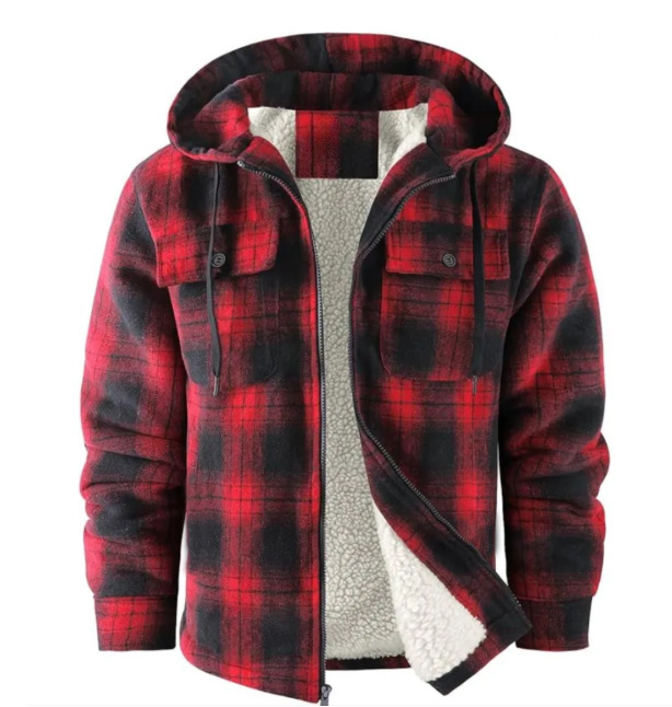 외국 무역 독립 웹사이트 남성복 유럽 및 미국 가을 겨울 두꺼운 면 코트 체크무늬 긴팔 루즈핏 후드 재킷 회색 모피스토어 가기