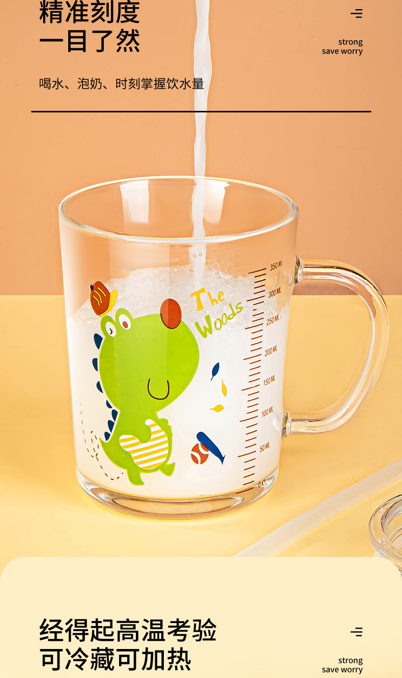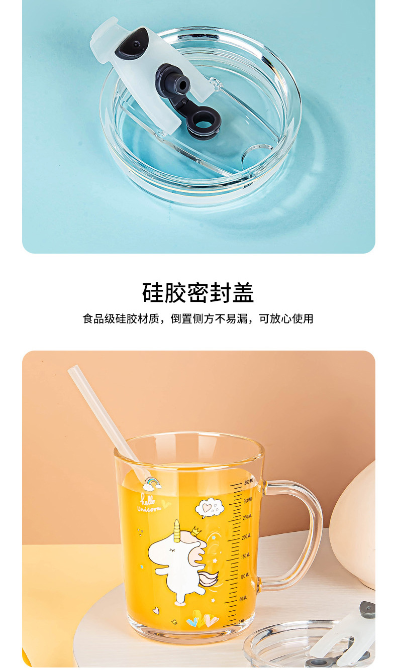 • 350 “초록 공룡 + 유니콘” + 밀봉 뚜껑 + 유리 빨대