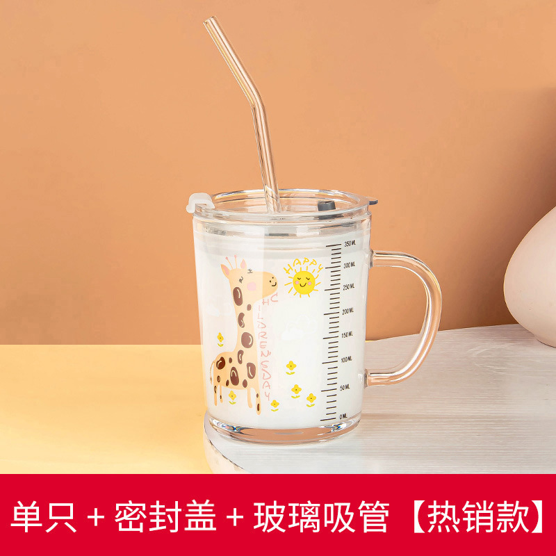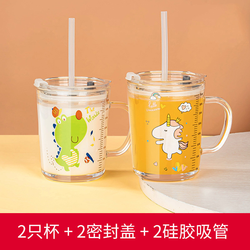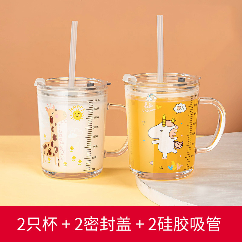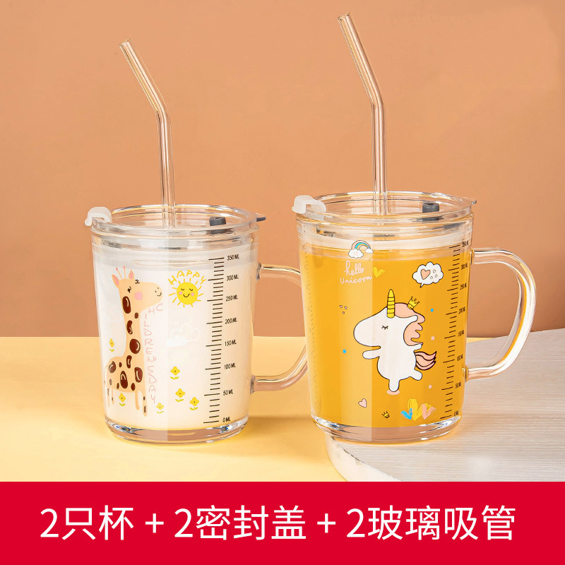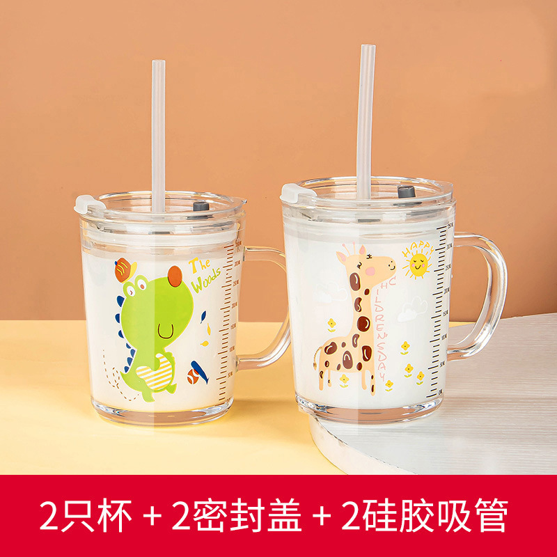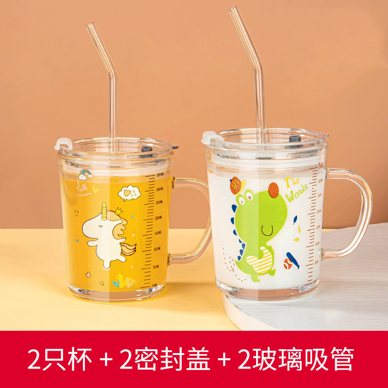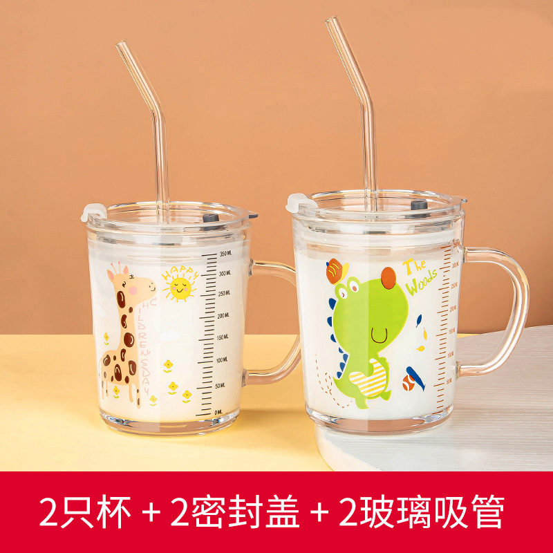 밀짚 유리 가정용 뚜껑이있는 어린이 물컵 우유 컵 어린이 여름 귀여운 식수 찻잔 장바구니스토어 가기