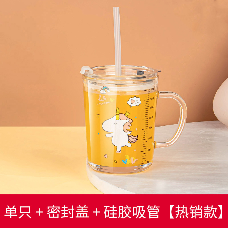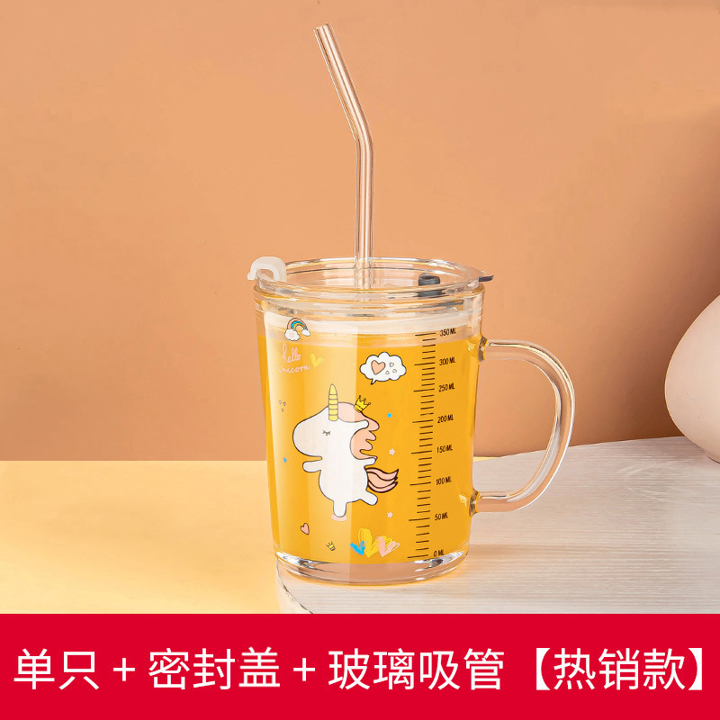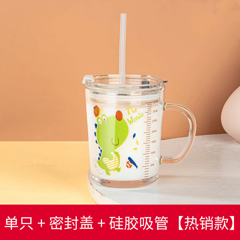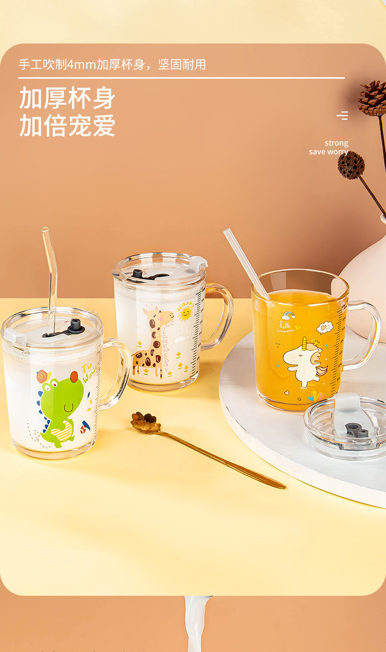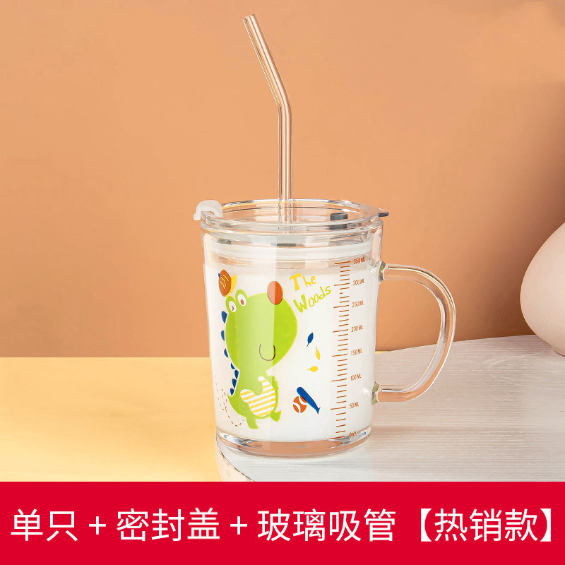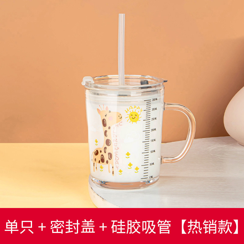 밀짚 유리 가정용 뚜껑이있는 어린이 물컵 우유 컵 어린이 여름 귀여운 식수 찻잔 장바구니스토어 가기