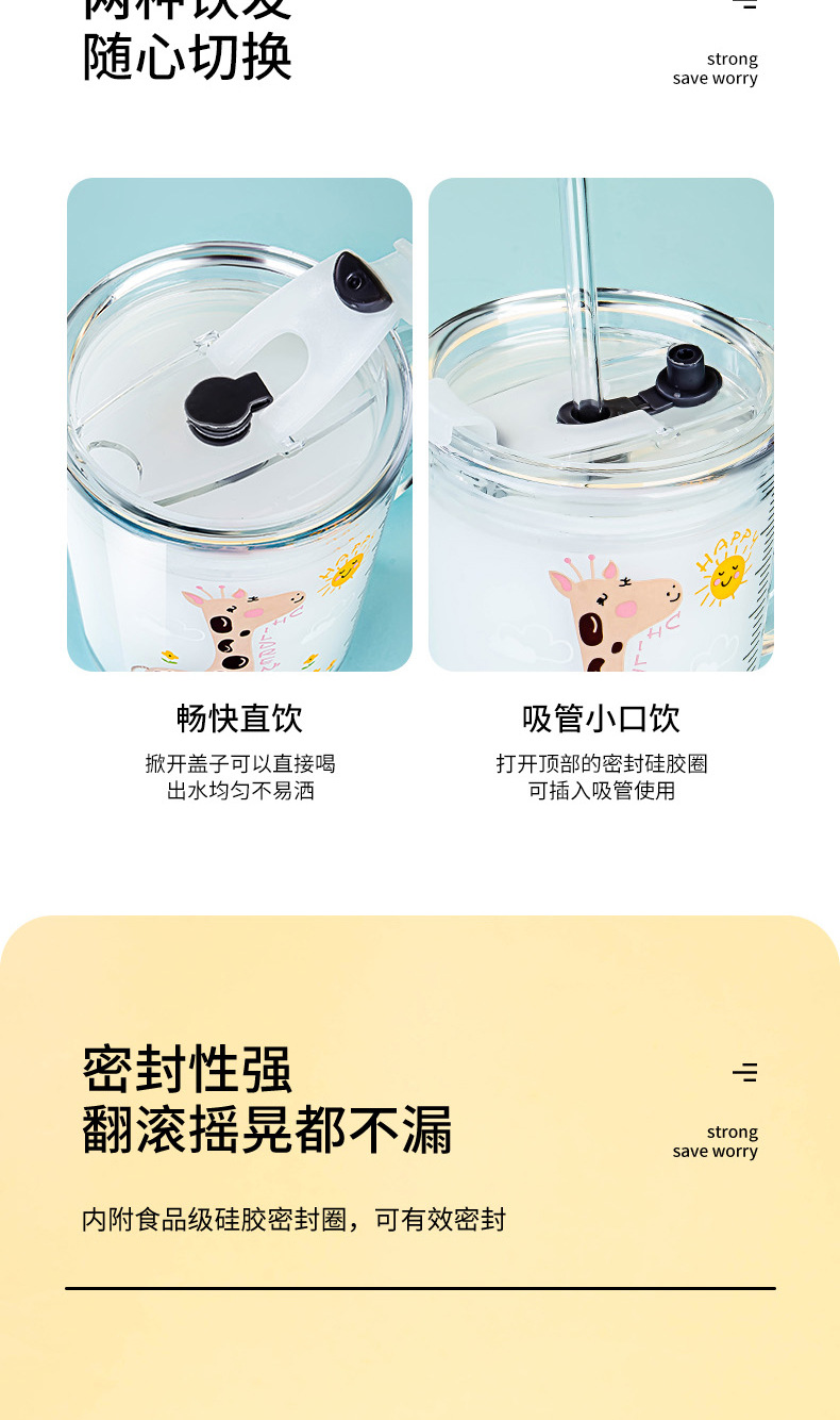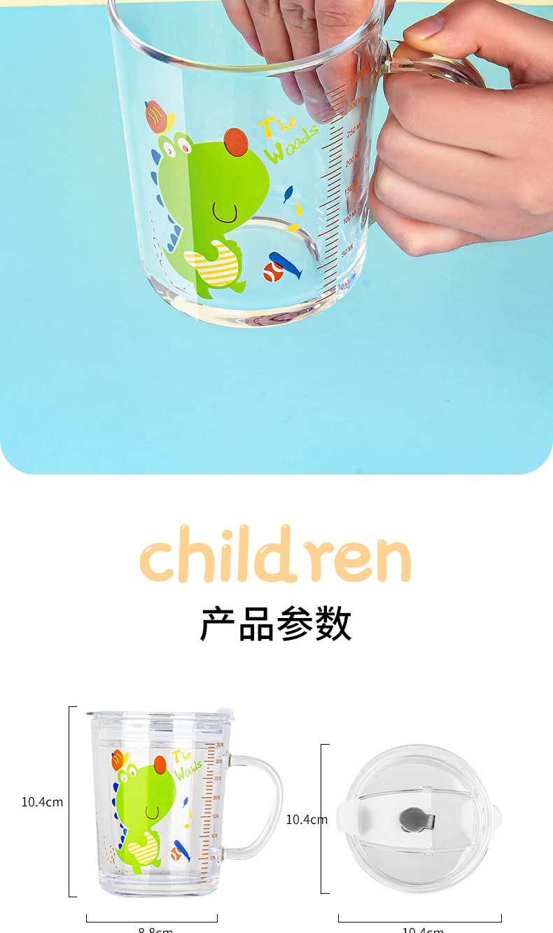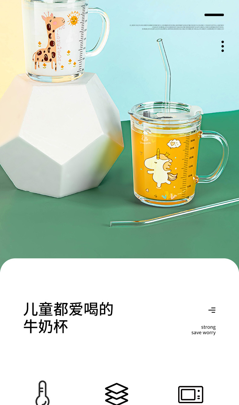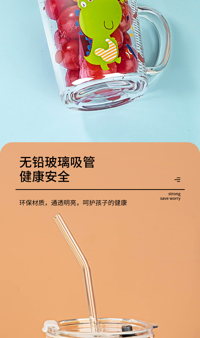 밀짚 유리 가정용 뚜껑이있는 어린이 물컵 우유 컵 어린이 여름 귀여운 식수 찻잔 장바구니스토어 가기
