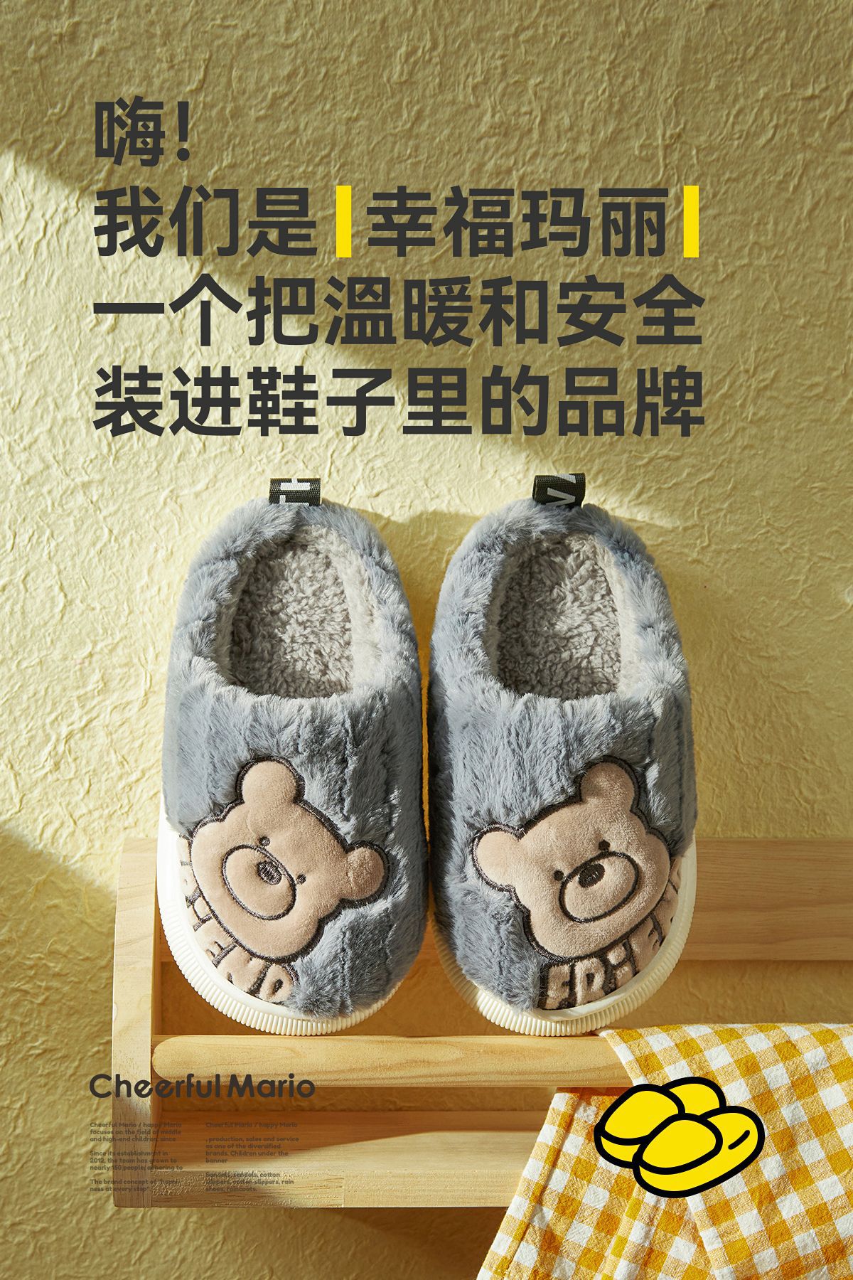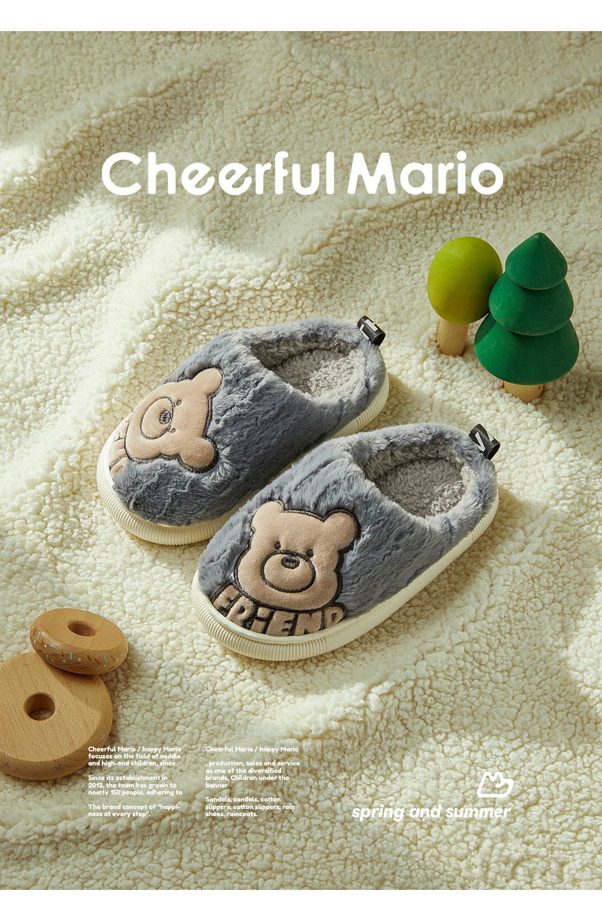 해피 메리 어린이 면 슬리퍼 남아 실내용 가을 겨울 홈웨어 아동 부모-자녀 중대형 어린이 털 슬리퍼스토어 가기