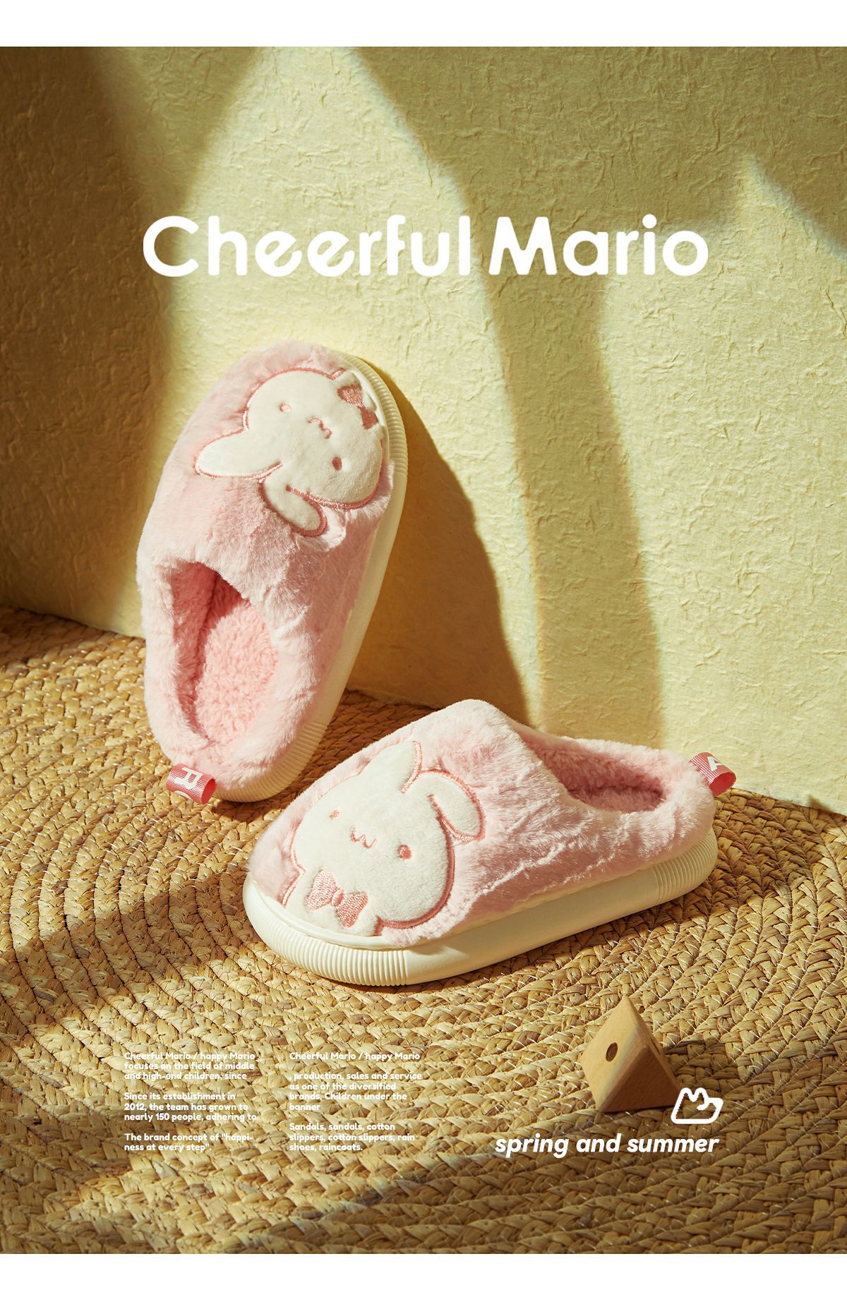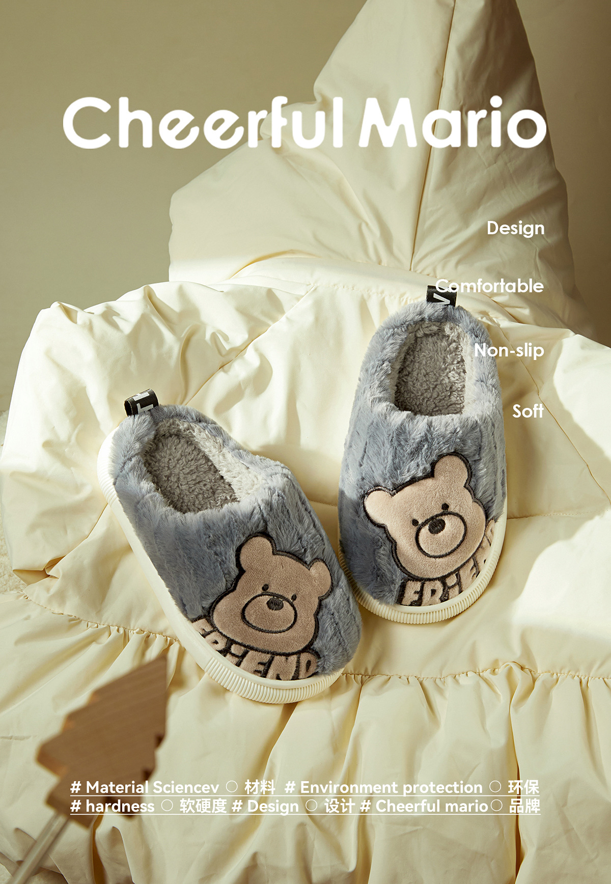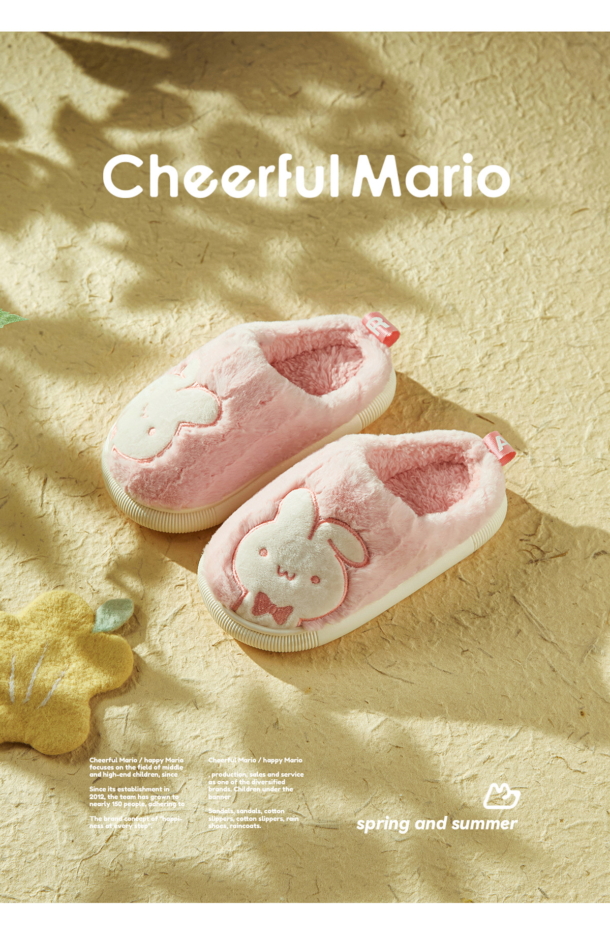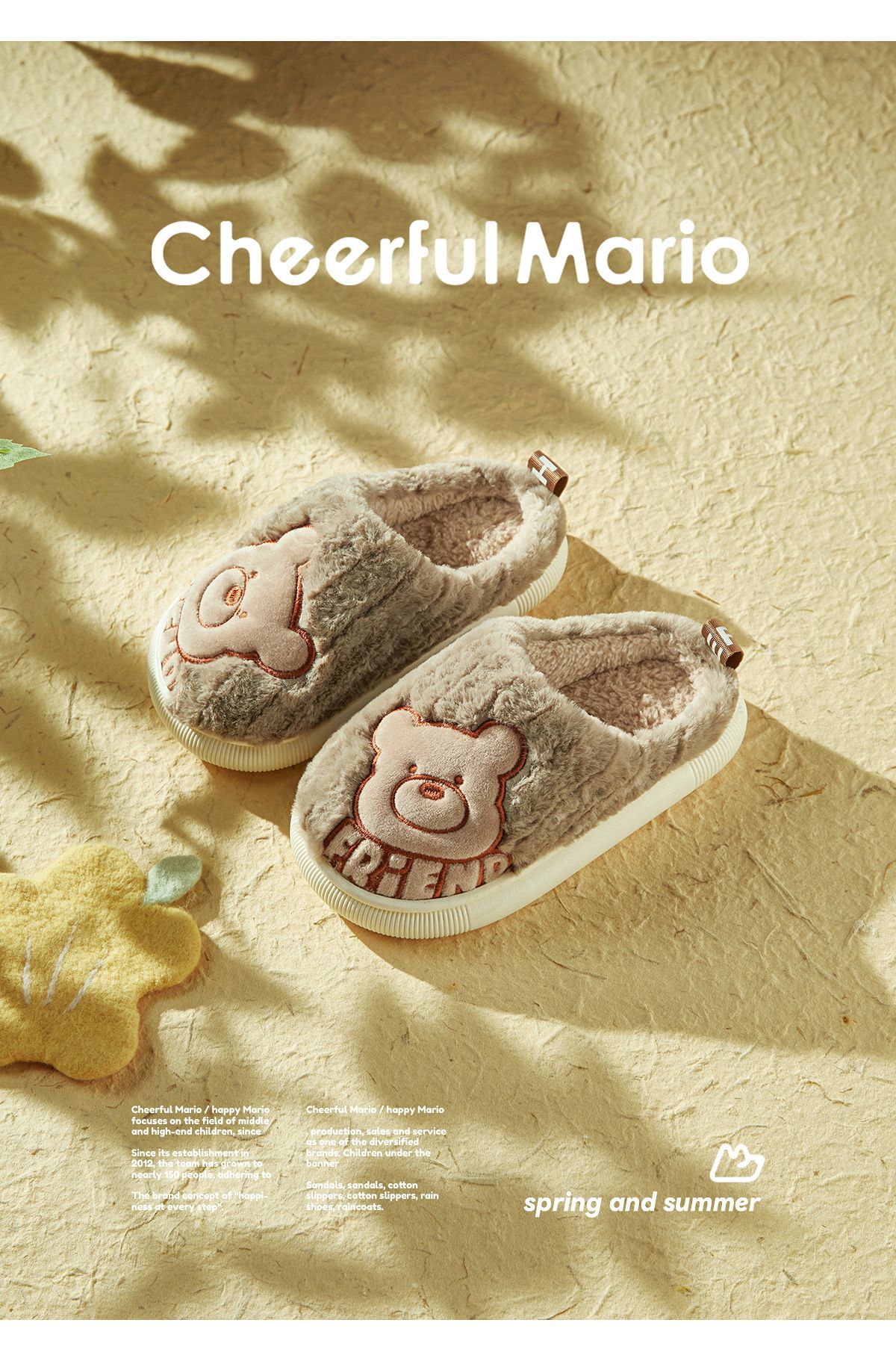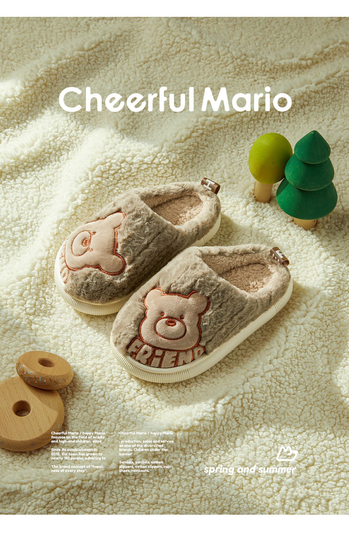 해피 메리 어린이 면 슬리퍼 남아 실내용 가을 겨울 홈웨어 아동 부모-자녀 중대형 어린이 털 슬리퍼