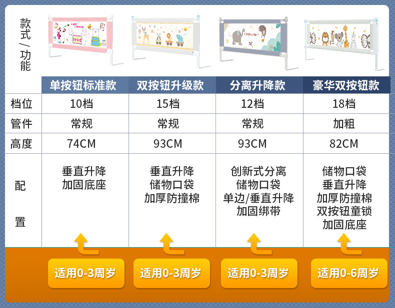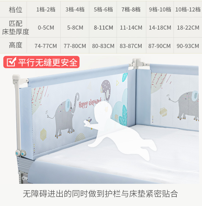 제조 업체 도매 높이 조절 침대 가드 레일 아기 어린이 안전 1.68m 2m 아기 낙하 방지 침대 울타리스토어 가기