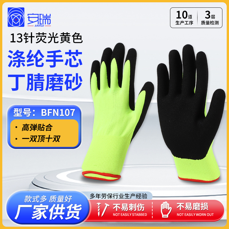 니트릴 젖빛 13 핀 담근 내마모성 장갑 BFN107 절단 방지 도축 노동 보호 니트릴 코팅 장갑스토어 가기