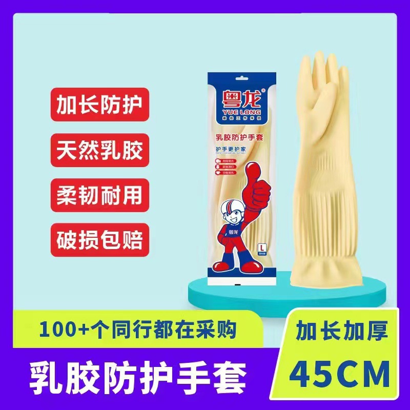 Yuelong 길어진 두꺼운 라텍스 장갑 38cm 45cm 세탁 식기 세척기 가정용 라텍스 내마모성 및 내구성