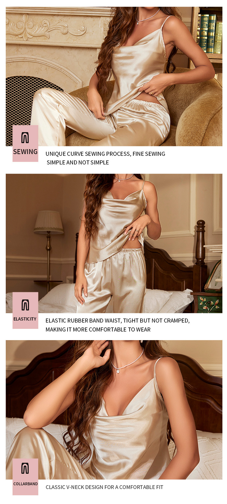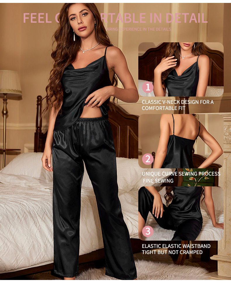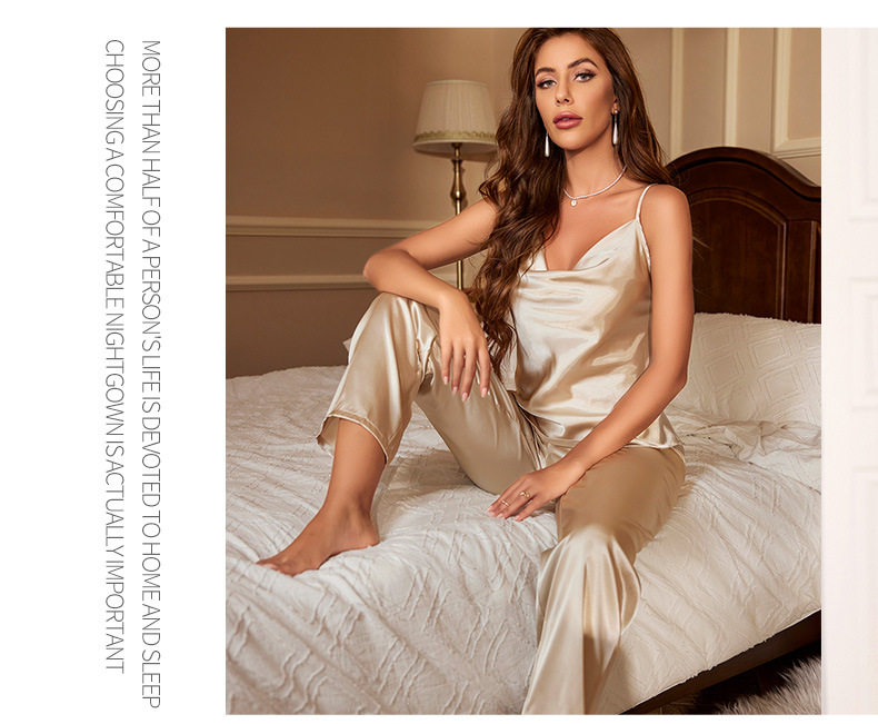 봄과 여름 새로운 아이스 실크 잠옷 유럽과 미국 패션 간단한 속옷 슬링 잠옷 통기성 얇은 섹시한 가정 옷