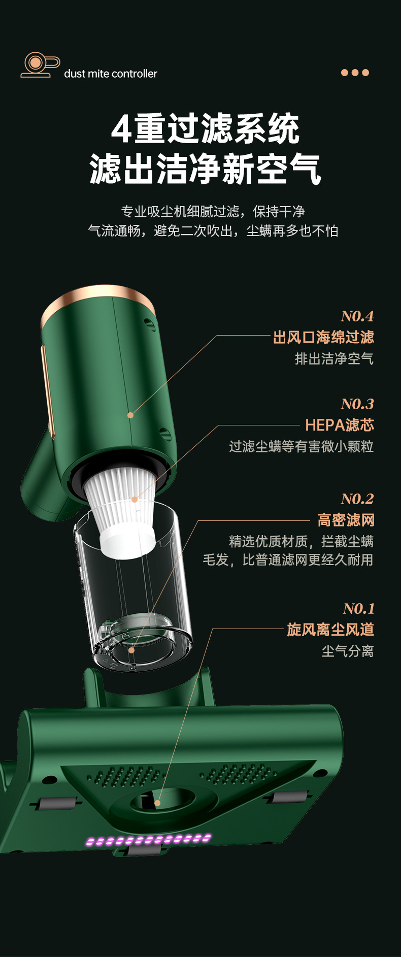 • 먼지 흡입 + 진드기 제거 = 눈에 보이는 효과 [아보카도 그린]