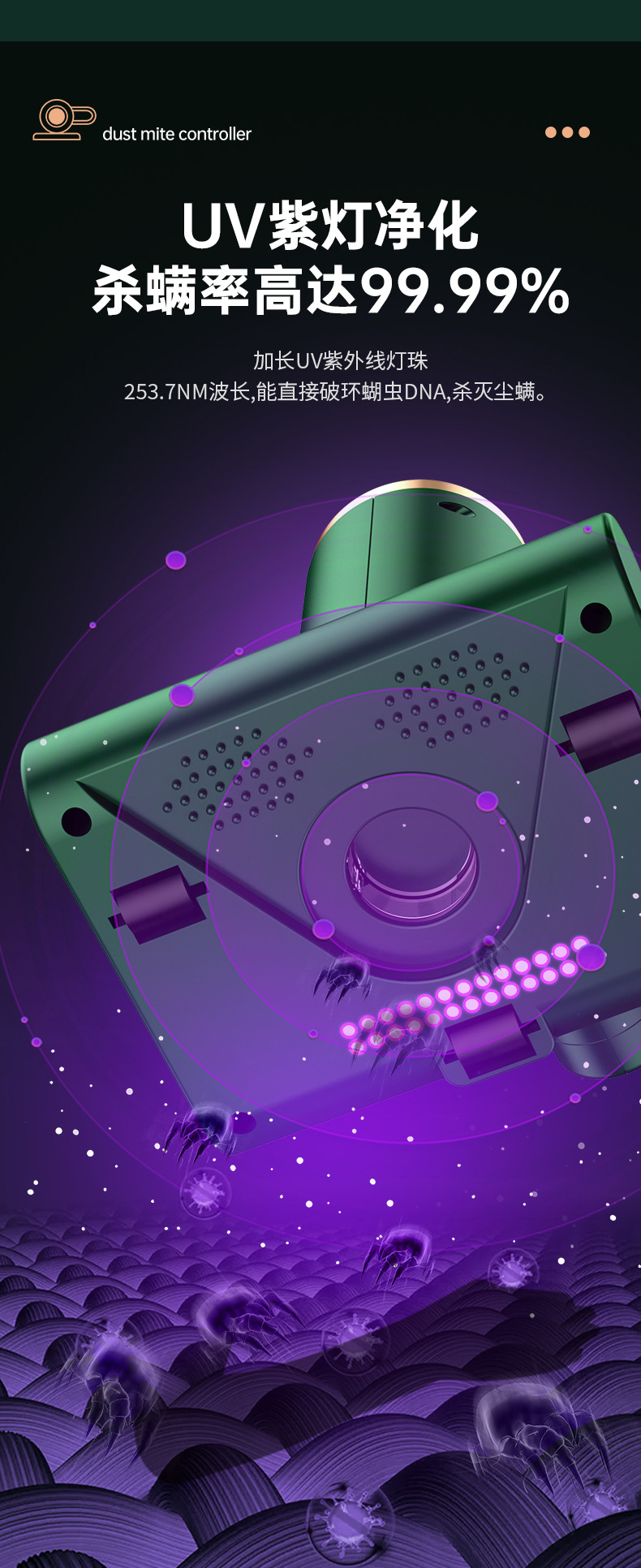 대외 무역 가정용 무선 휴대용 UV 진드기 제거제 가정용 자동차 진공 청소기 진드기 제거제 투인원 진드기 제거제