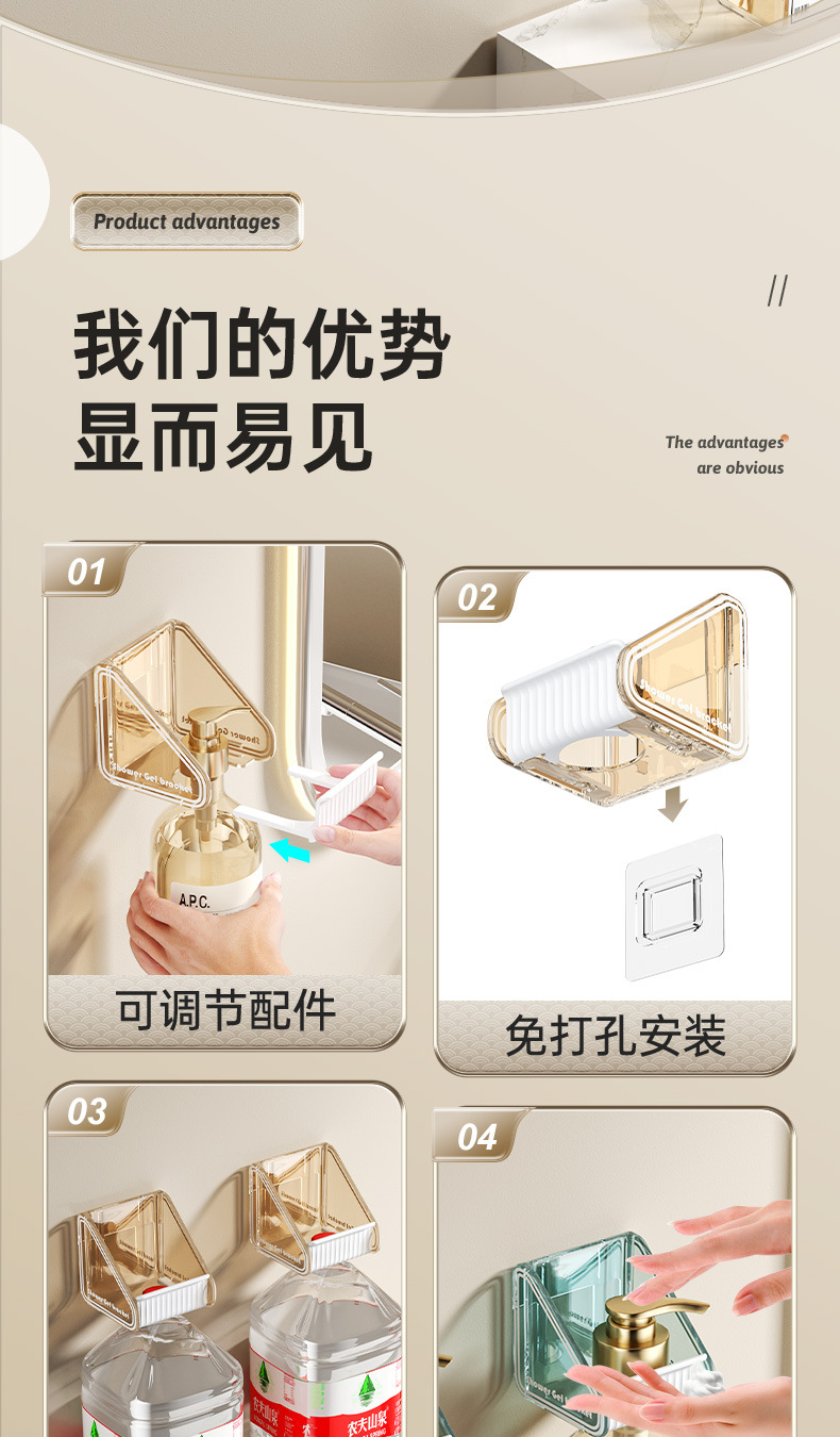 욕실 샤워 젤 보관 랙 펀치 프리 세제 랙 월 브래킷 손 소독제 랙 벽걸이 형 화장실스토어 가기