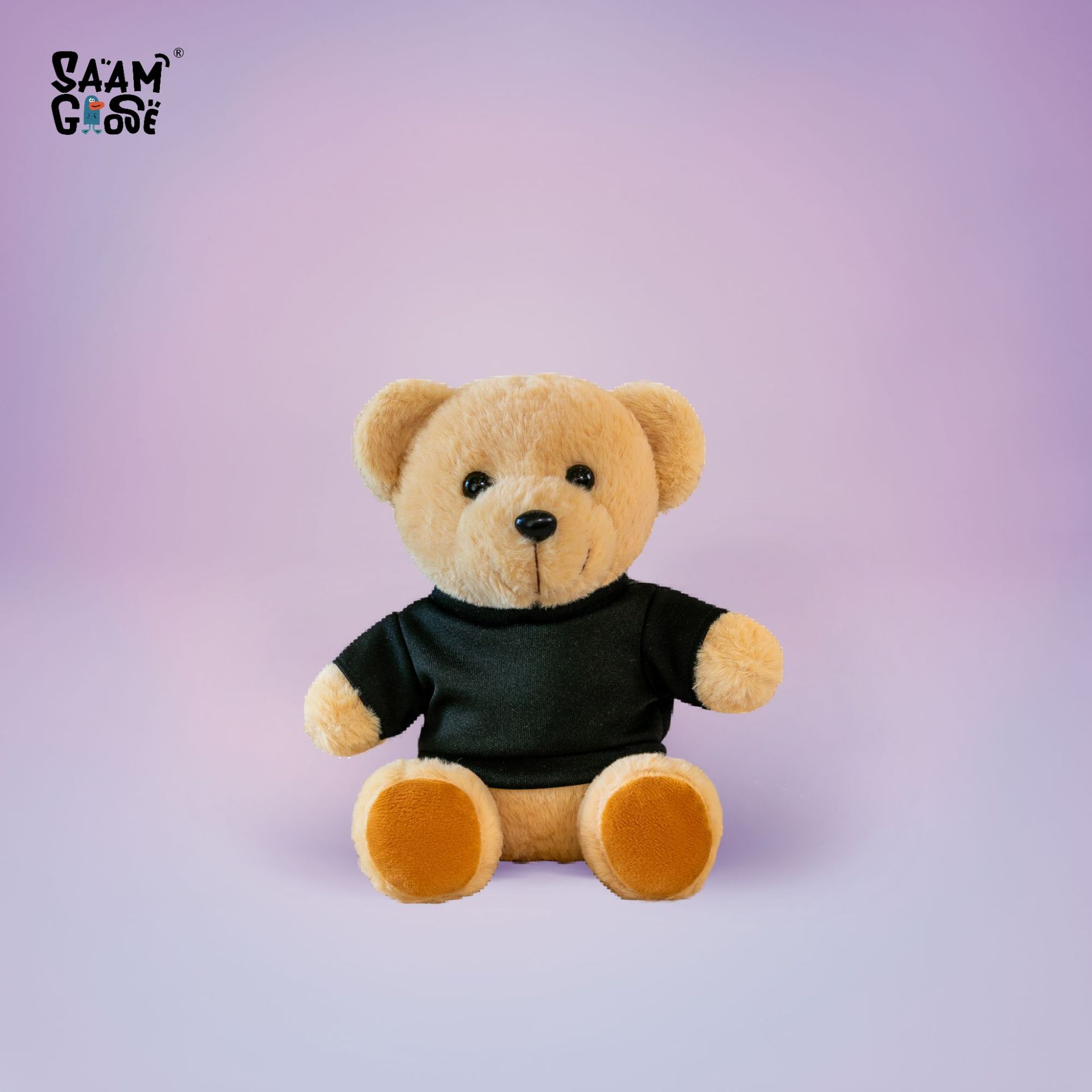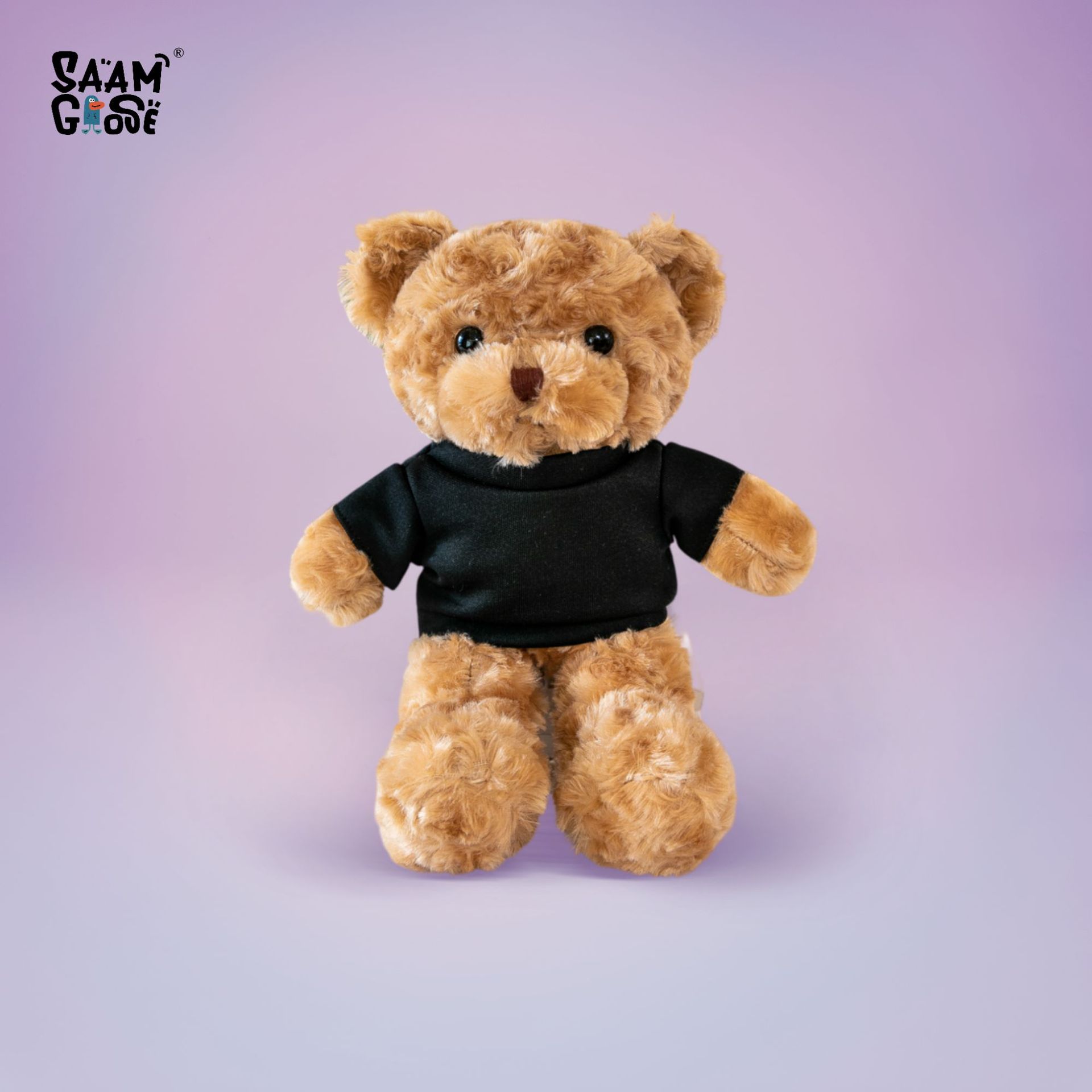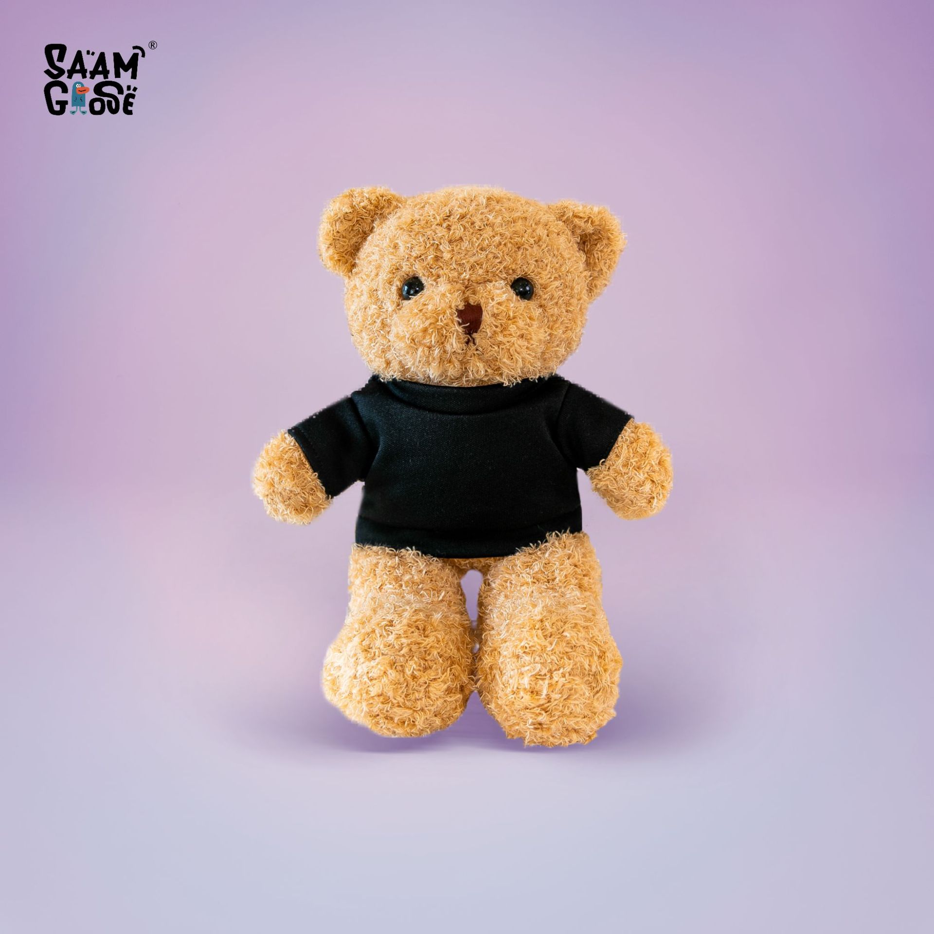 • 검정 티셔츠 - 카멜 브라운 테디베어 (짧은 털)