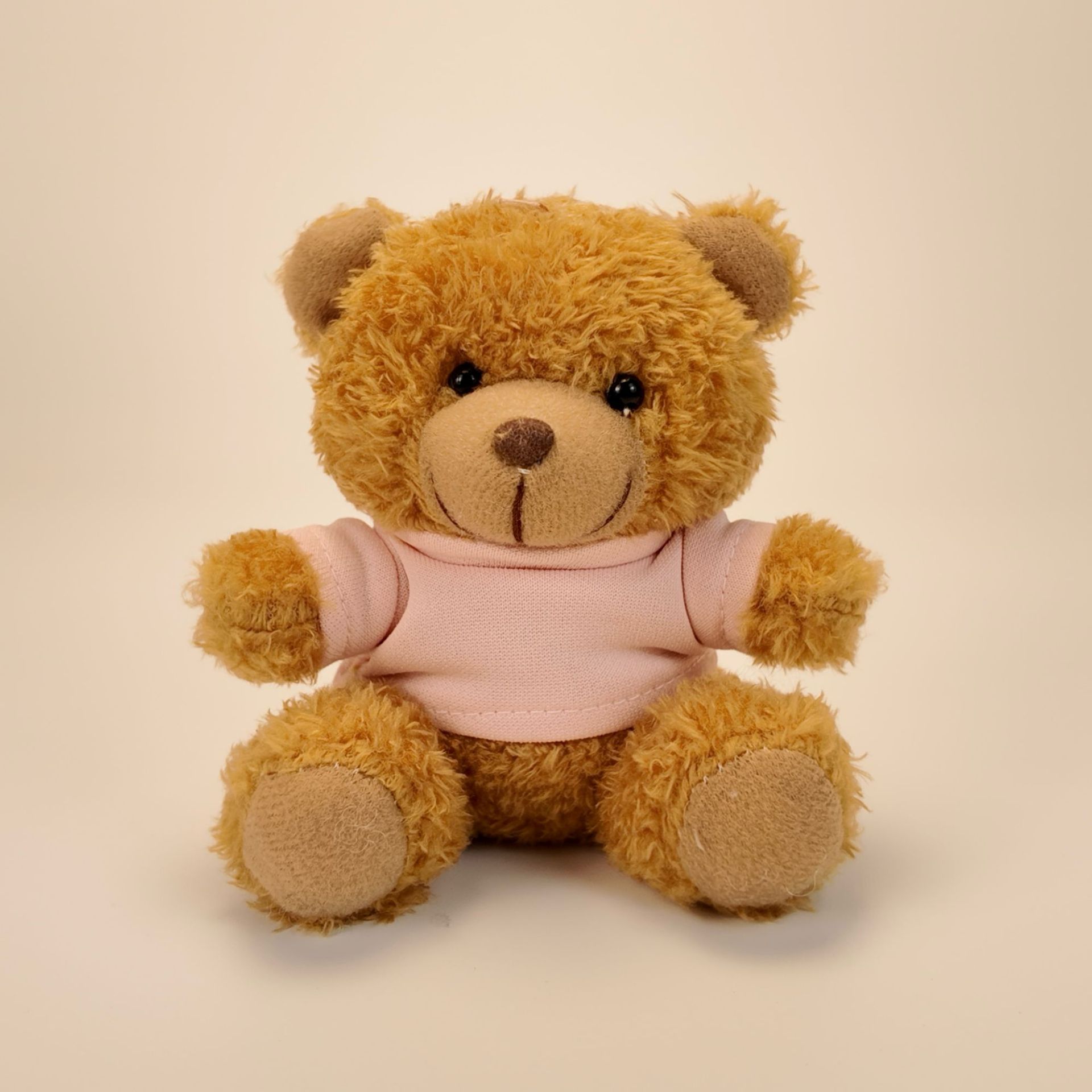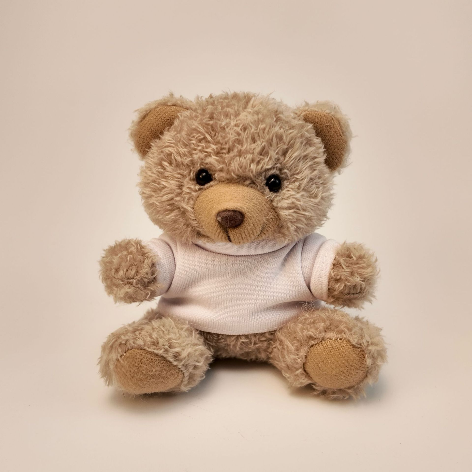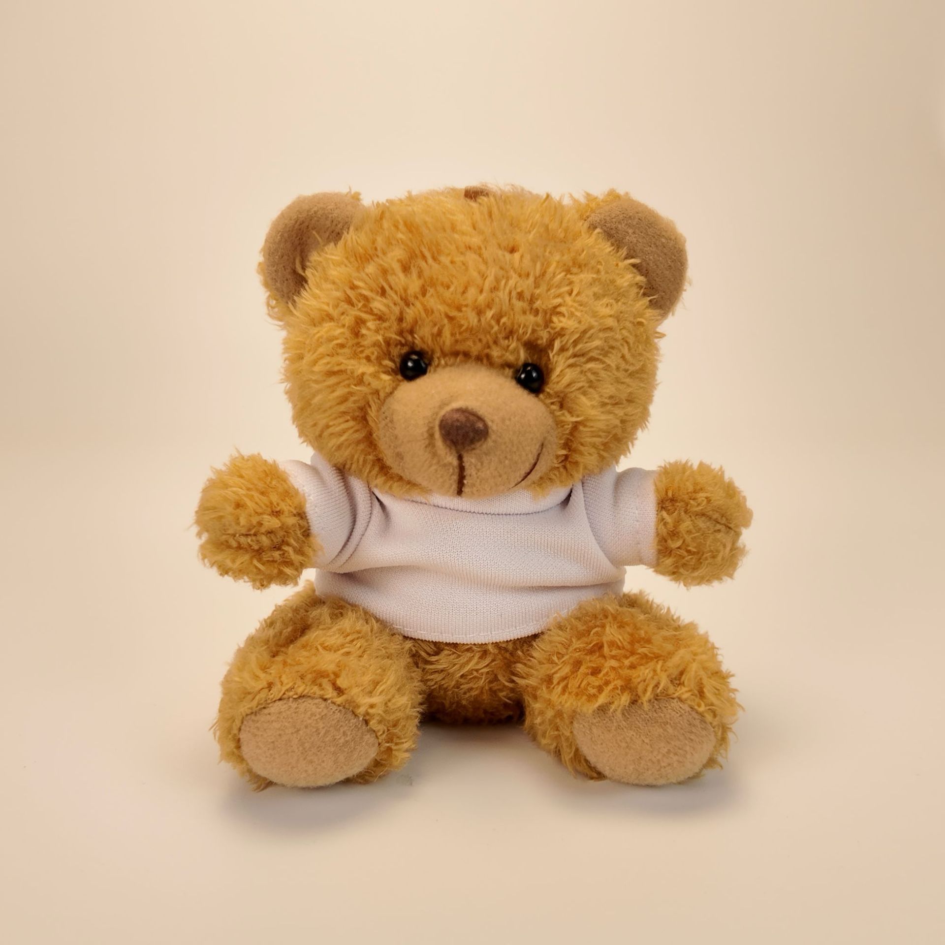 • 검정 티셔츠 - 카멜 브라운 테디베어 (짧은 털)