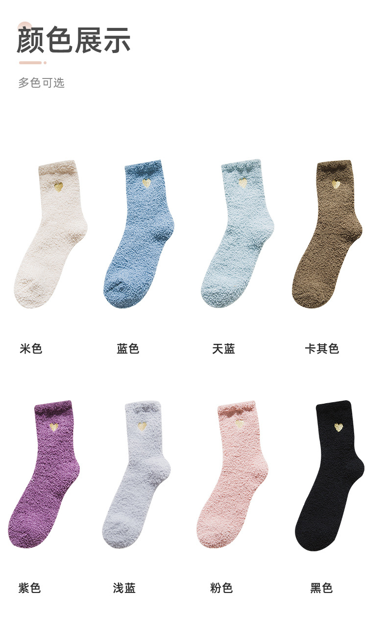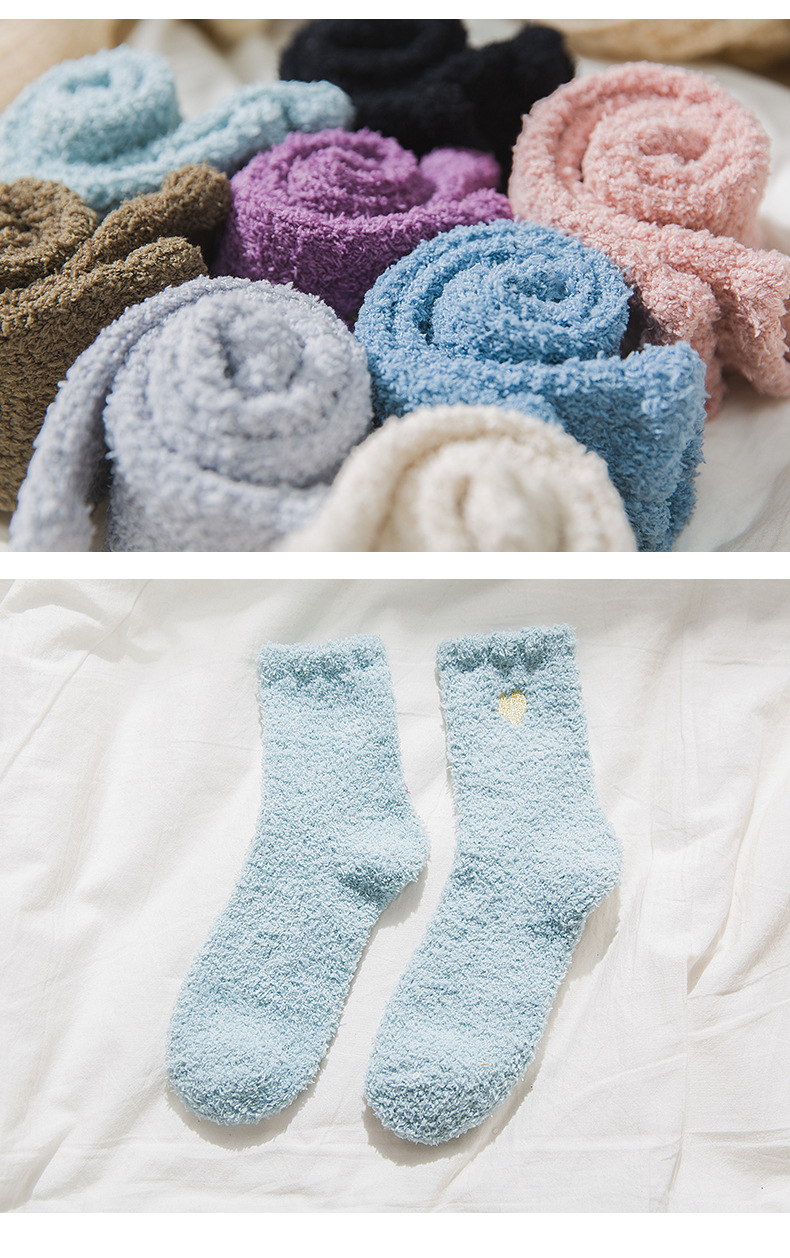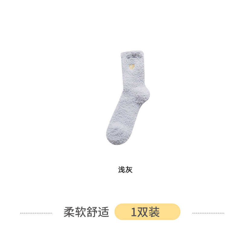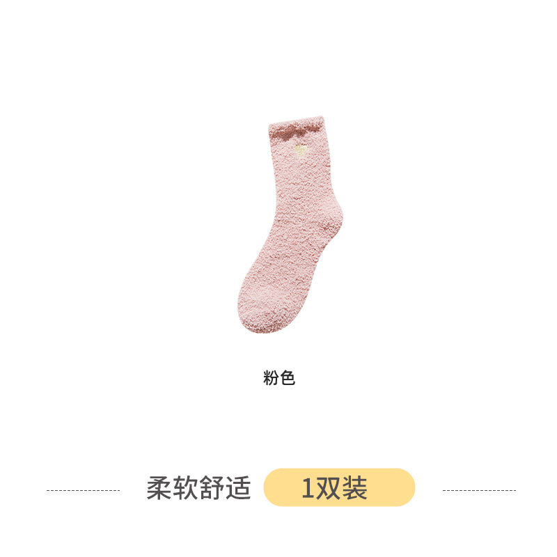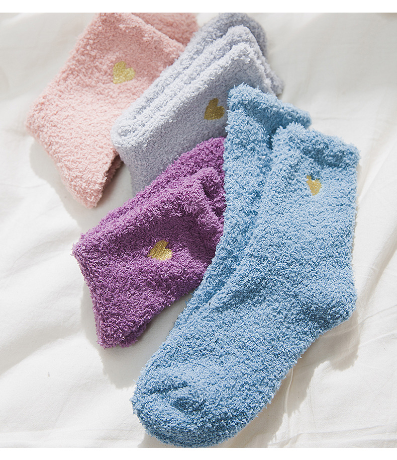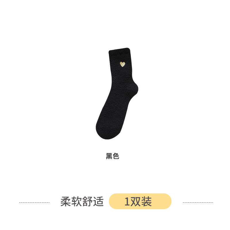 사랑 자수 산호 벨벳 양말 여자의 가을과 겨울 따뜻한 유물 간단한 두꺼운 중간 튜브 홈 수면 양말