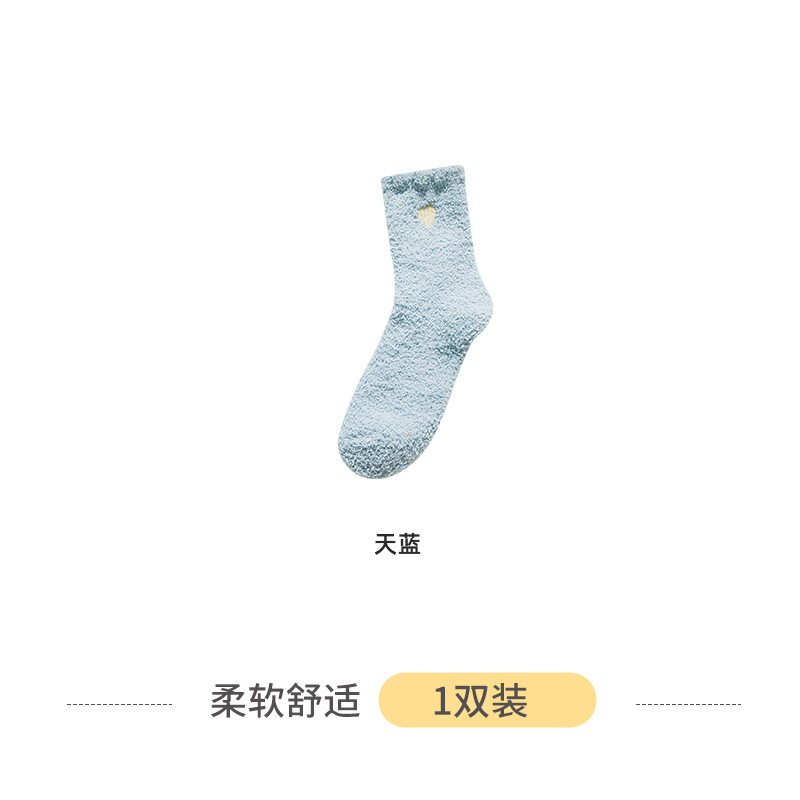 사랑 자수 산호 벨벳 양말 여자의 가을과 겨울 따뜻한 유물 간단한 두꺼운 중간 튜브 홈 수면 양말스토어 가기