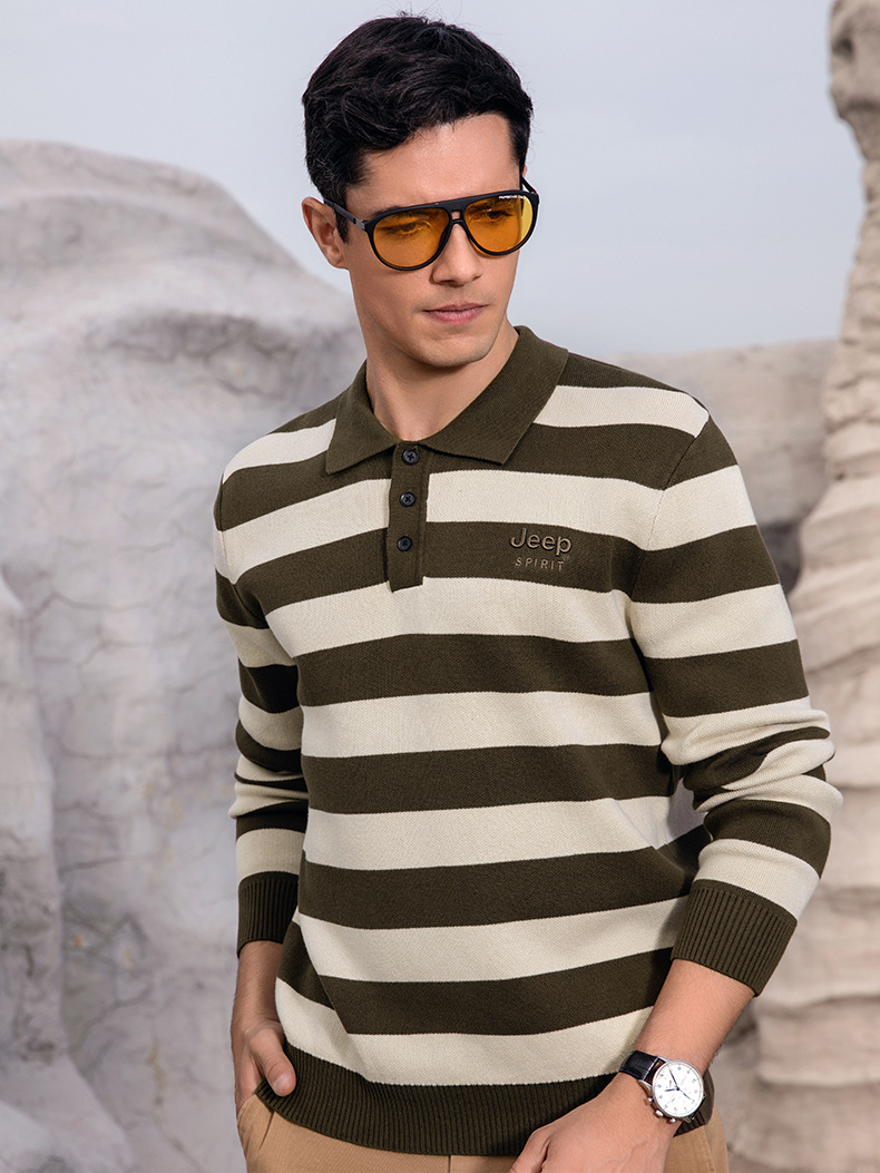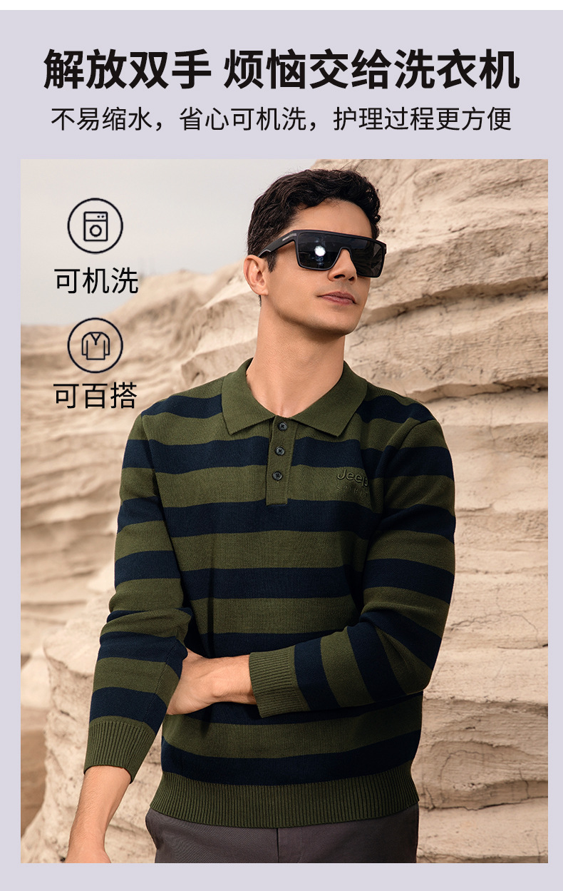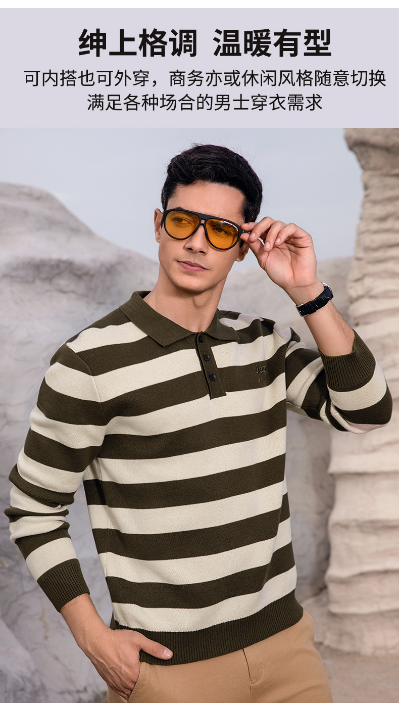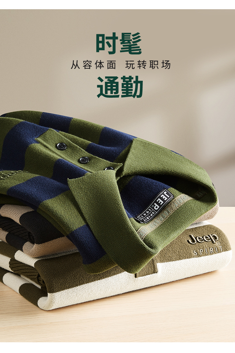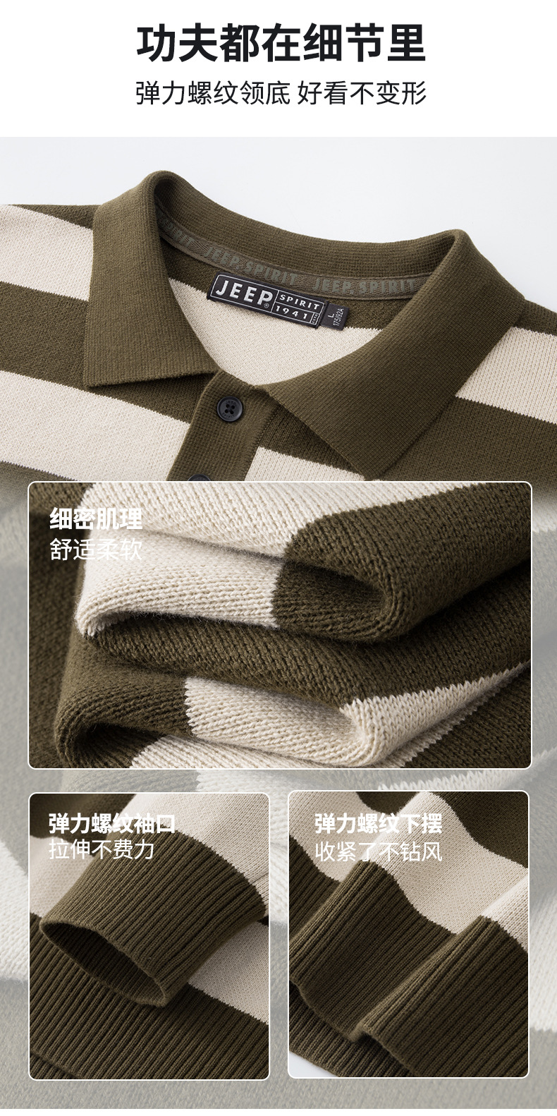 JEEP SPIRIT 남성용 스웨터, 트렌디하고 다재다능한 봄, 가을 신상 니트웨어, 컬러블록 따뜻한 남성용 재킷스토어 가기