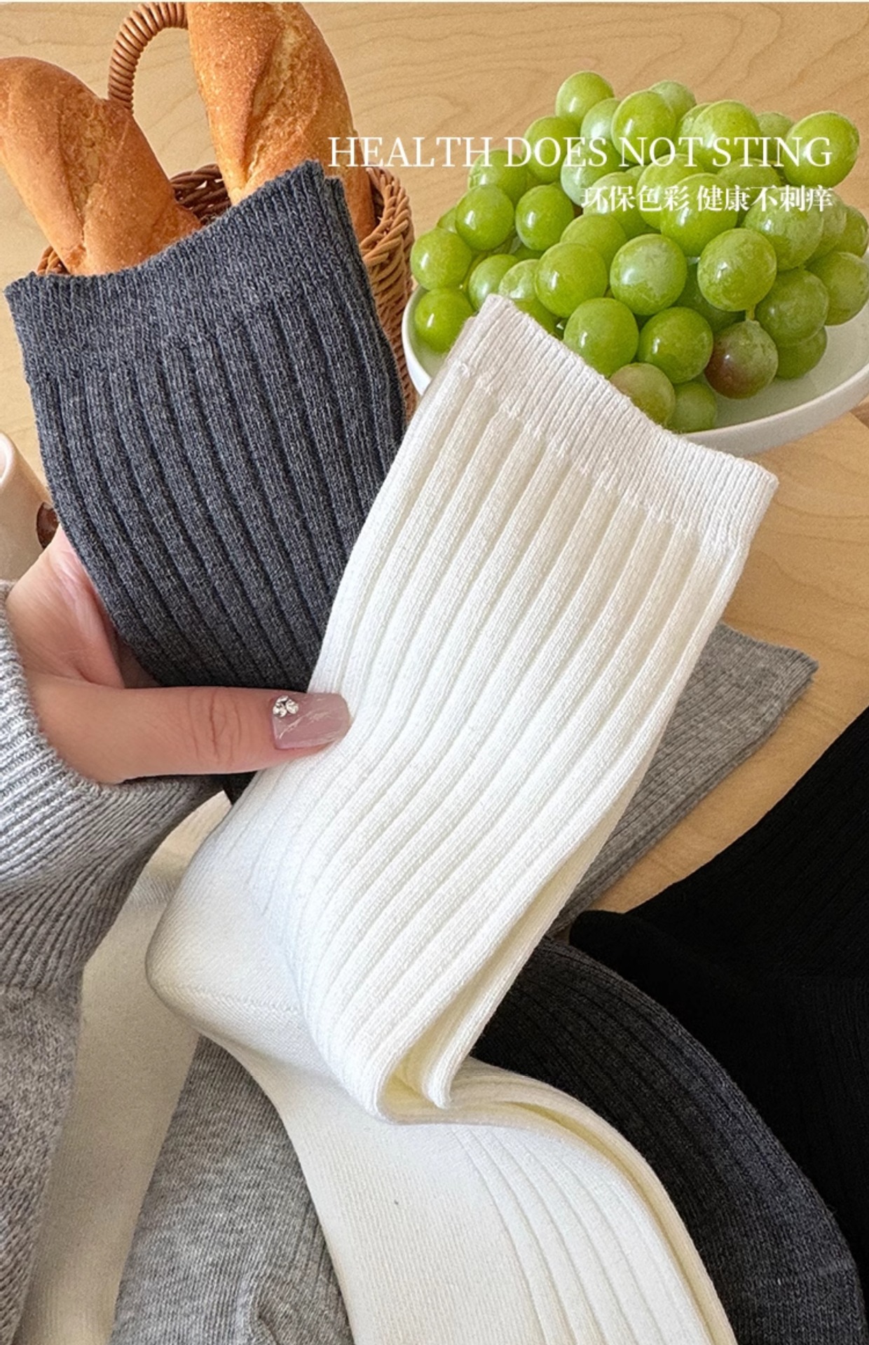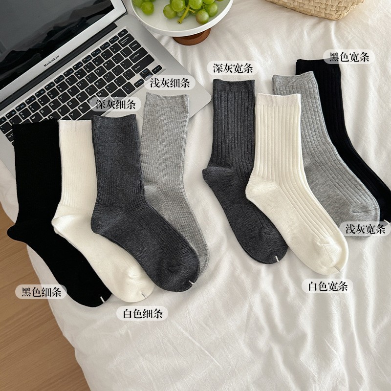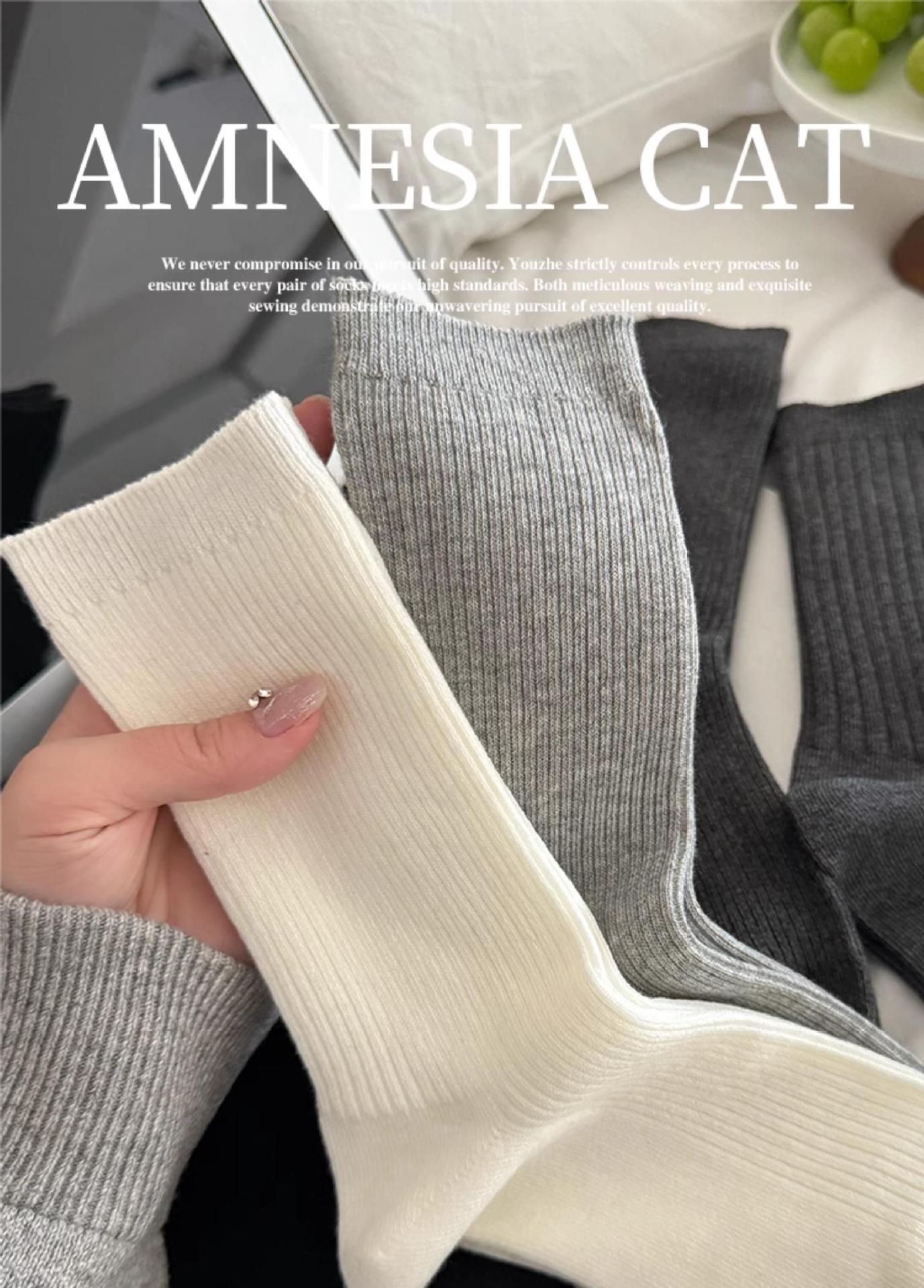 흰색 양말 여성용 중간 길이 양말 가을 겨울 면 양말 유행 온라인 인기 한국 스타일 스타킹 여성용 회색 더미 양말 봄과 가을스토어 가기