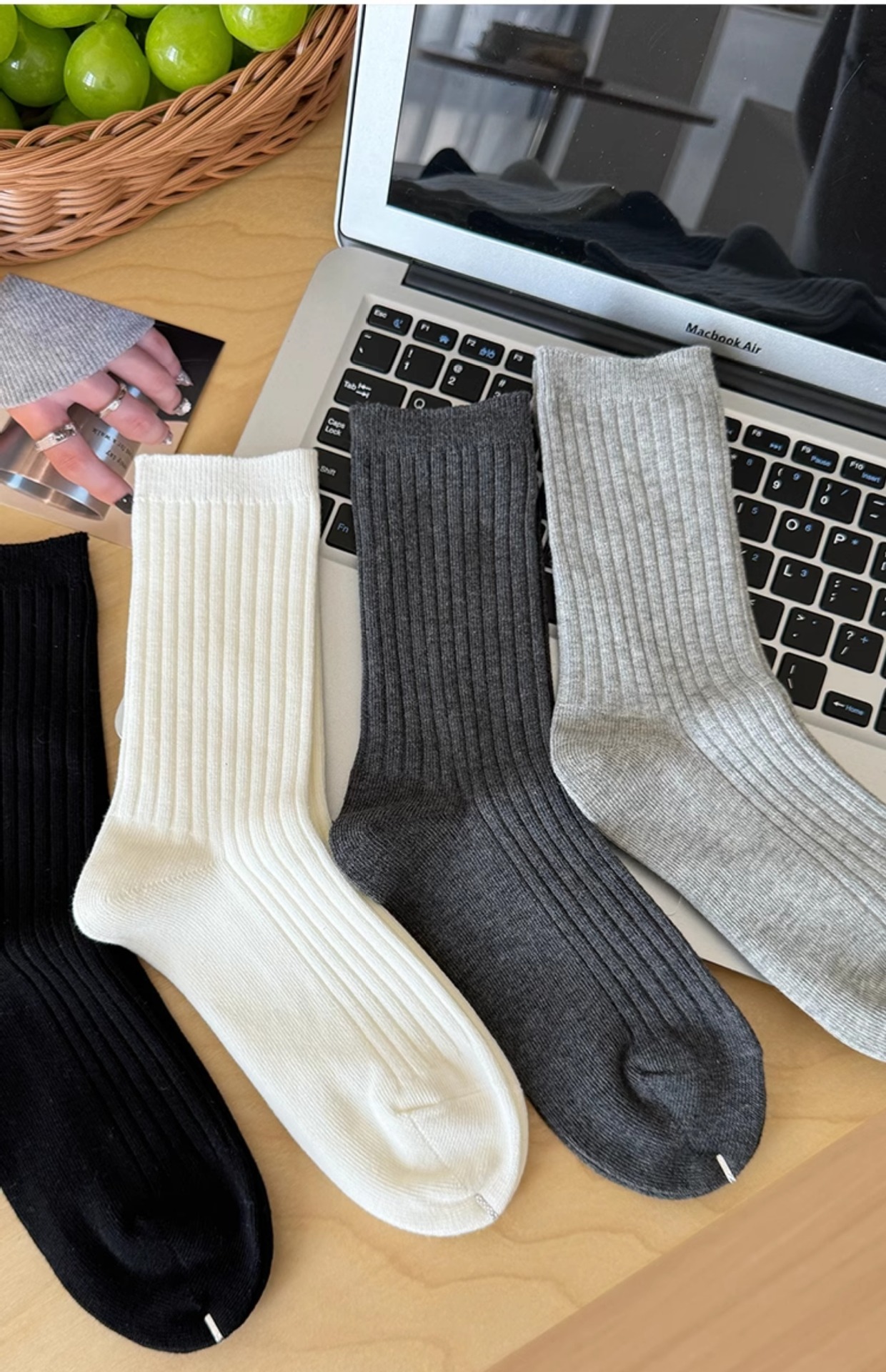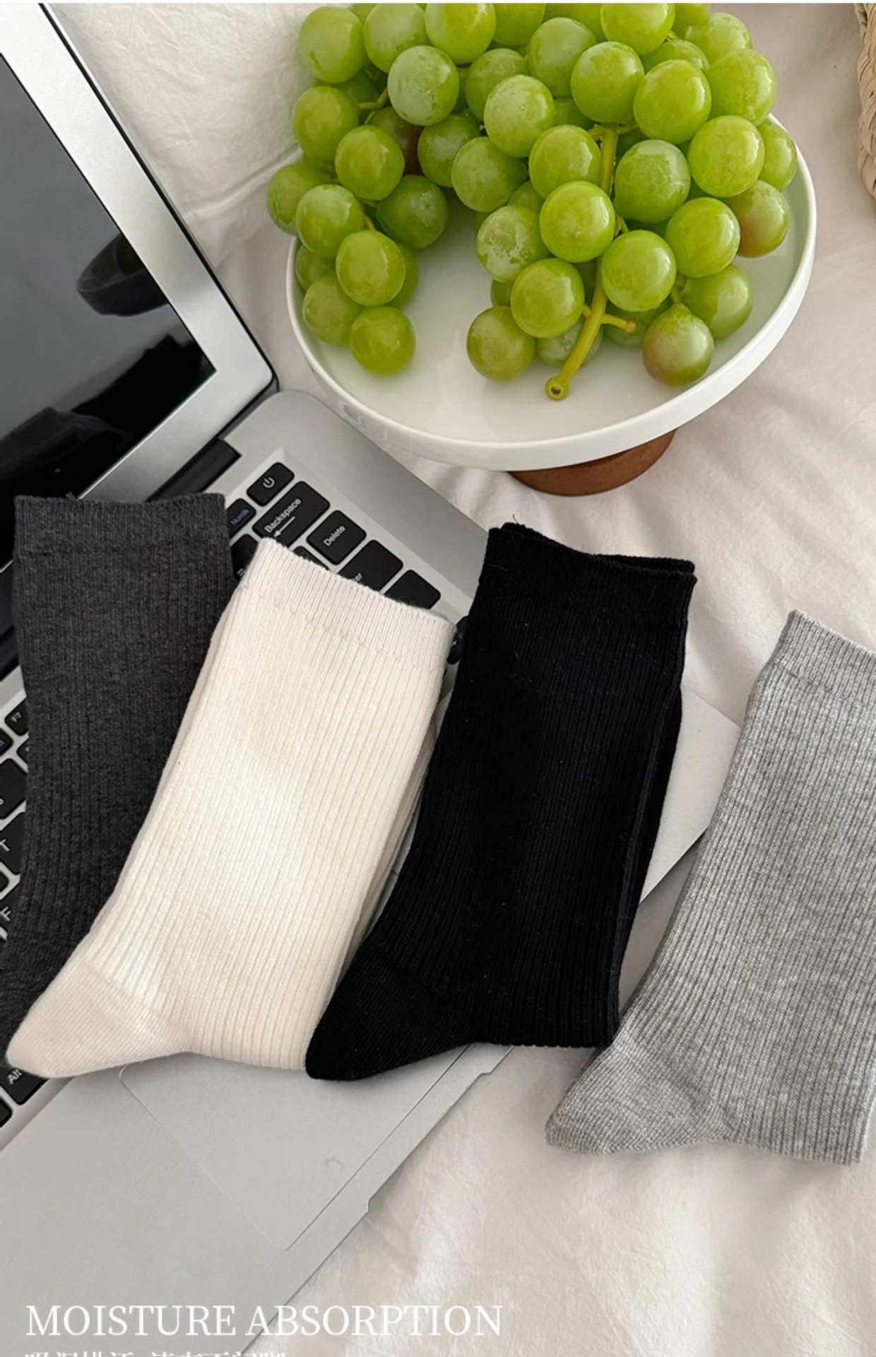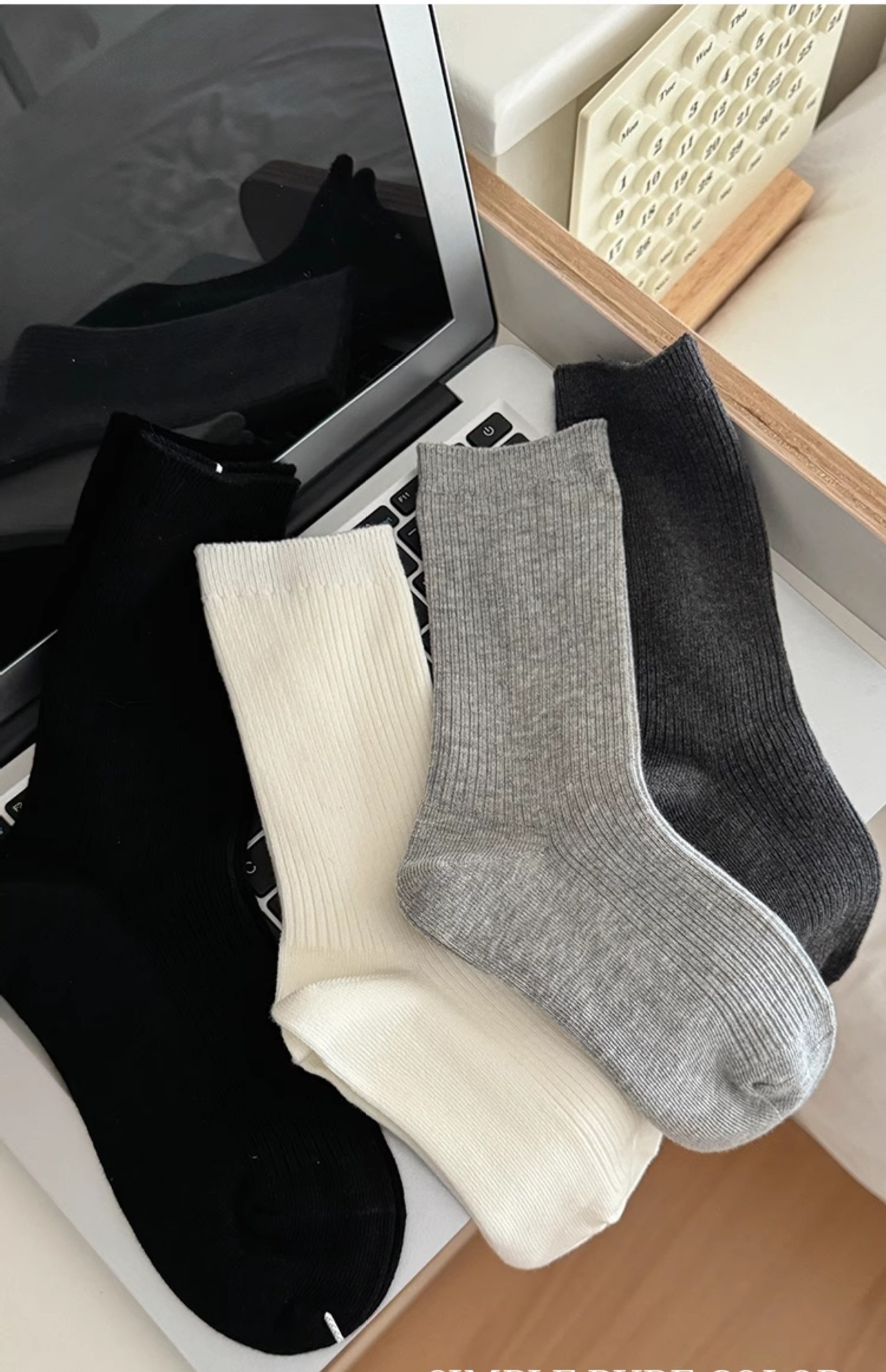 흰색 양말 여성용 중간 길이 양말 가을 겨울 면 양말 유행 온라인 인기 한국 스타일 스타킹 여성용 회색 더미 양말 봄과 가을스토어 가기