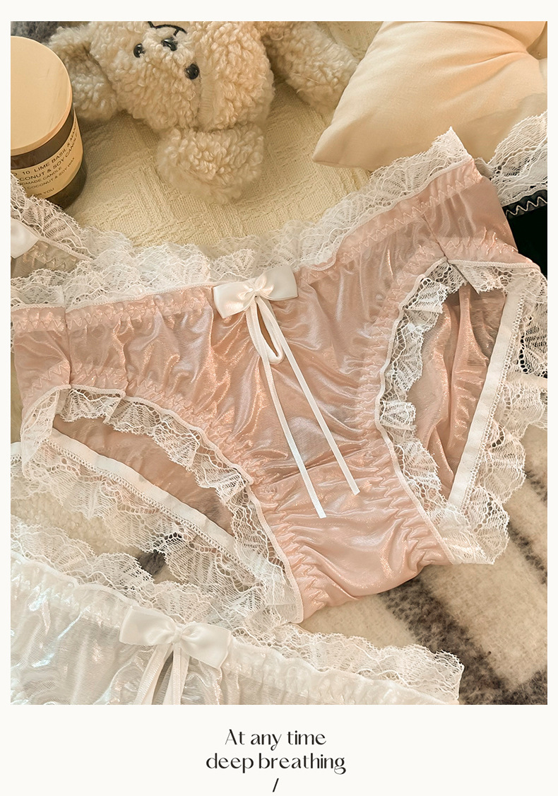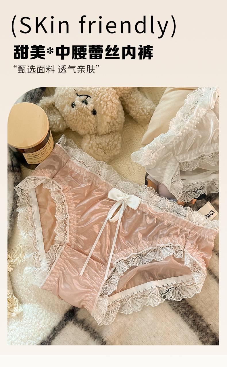 로리타 일본식 순수한 욕망 레이스 달콤한 귀여운 여성 속옷 미드 웨이스트 쿨 코튼 가랑이 팬티