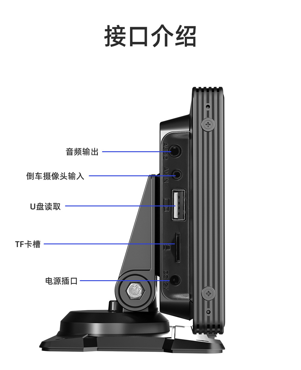 配 件:1.主机 2.说明书 3.点烟器电源线(带USB充电口) 4.装机支架x2 5.倒车视频线(配件、说明书、包装会不定时更新,以实际收到货为准)