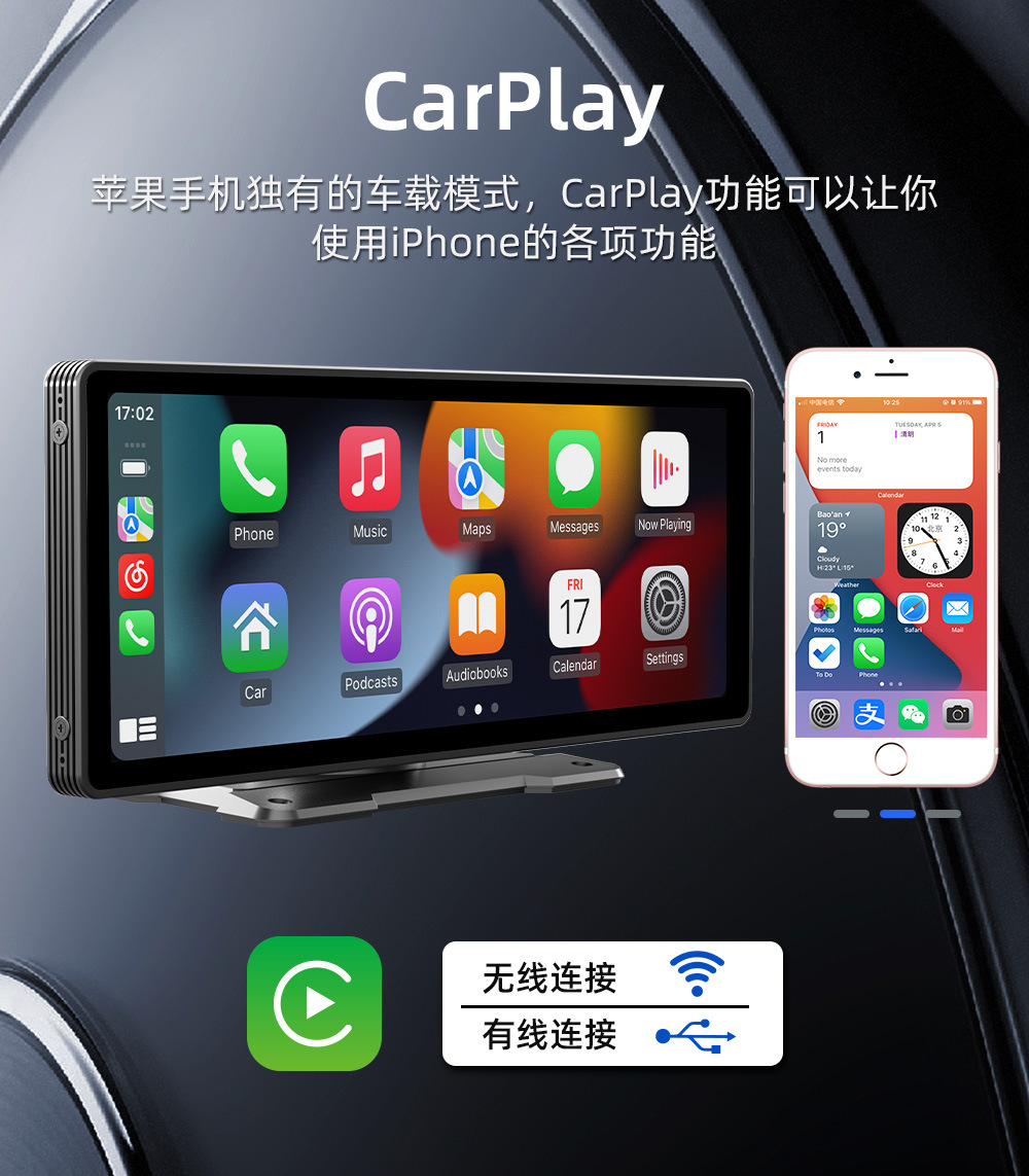 ♦支持有线和无线carplay+安卓Auto,一键实现手机导航、音乐、语音助手等功能,让你轻松享受驾驶的乐趣。