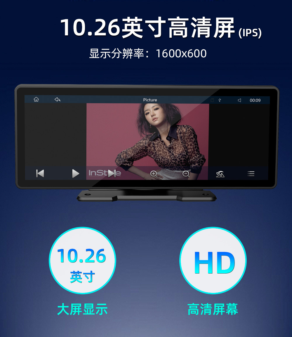 The 10.26 inches of high-quality display provides clear and detailed visuals, making it easy to navigate through your music and videos.