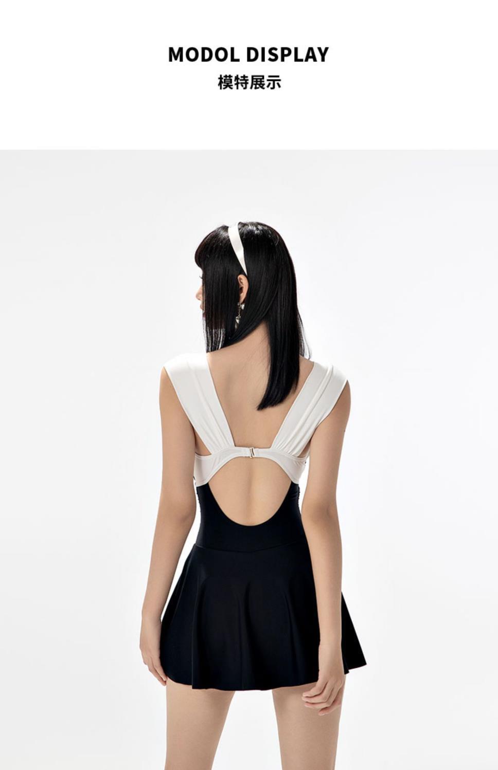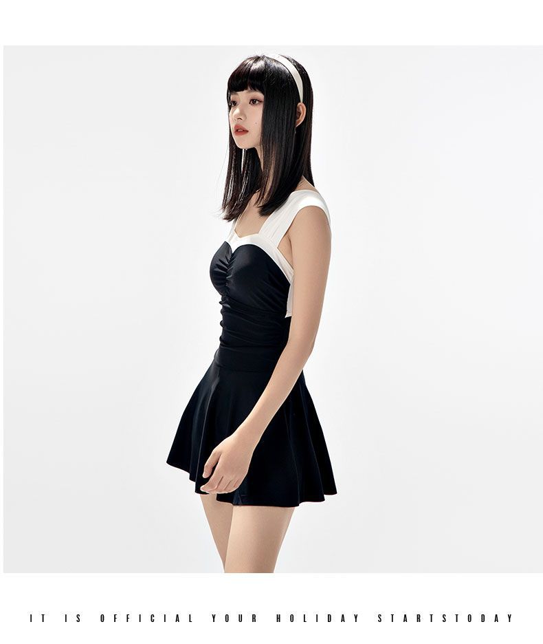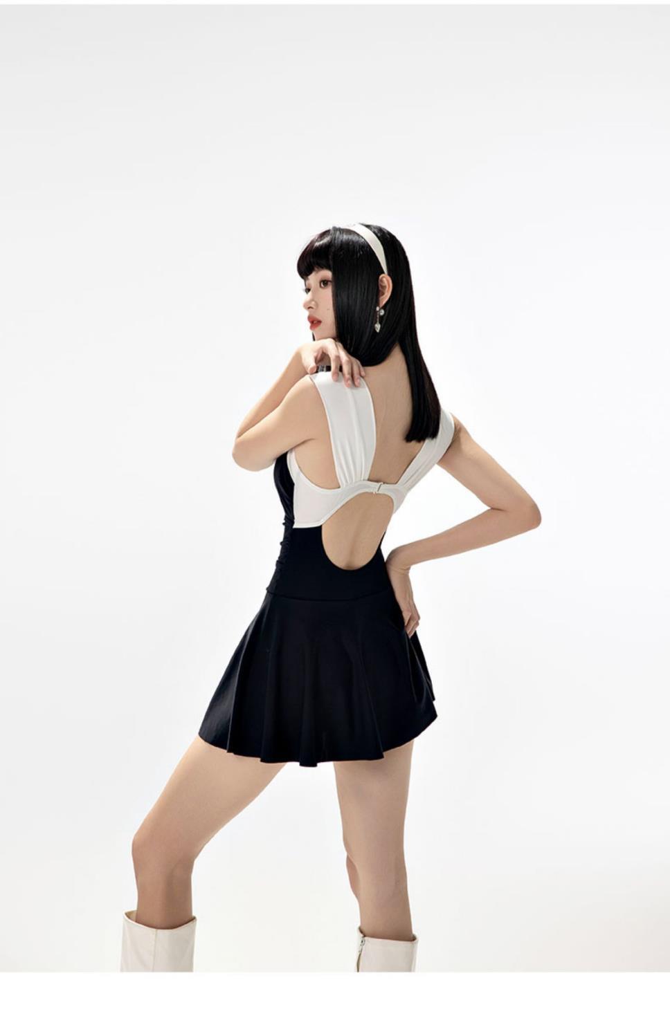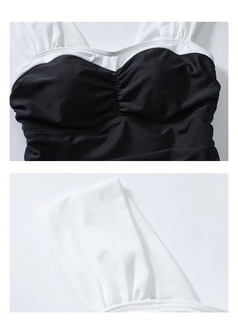 Funhancouple 흑백 대비 색상 간단한 스트랩 백리스 슬리밍 수영복 여성 배꼽 커버 보수적 인 온천 수영복