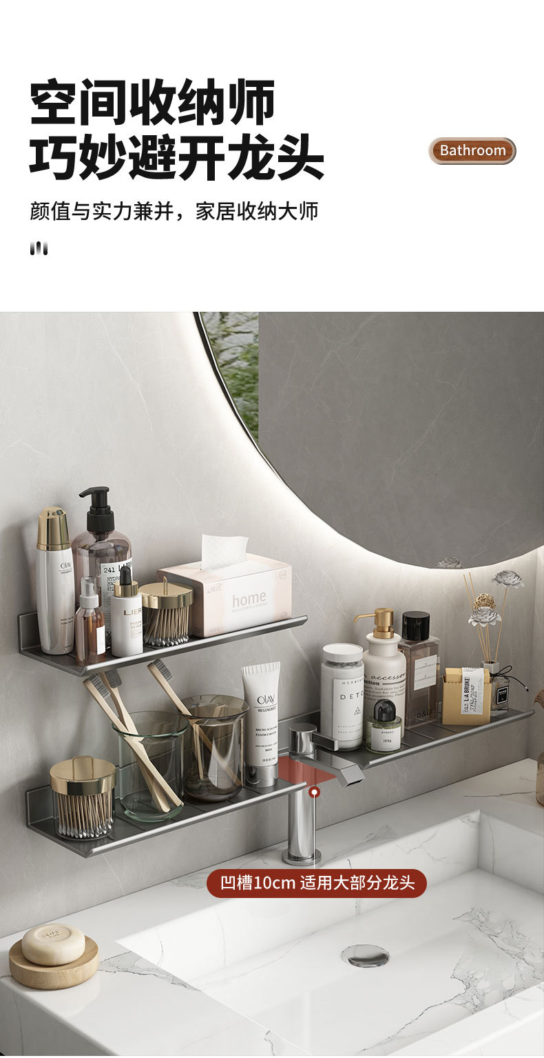 세면대 수납선반, 거울 전 세면대, 욕실, 펀치 없는 세면대, 욕실 수도꼭지, 욕실