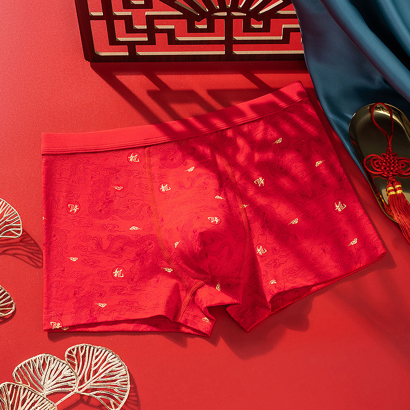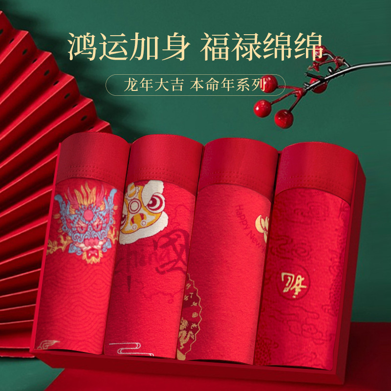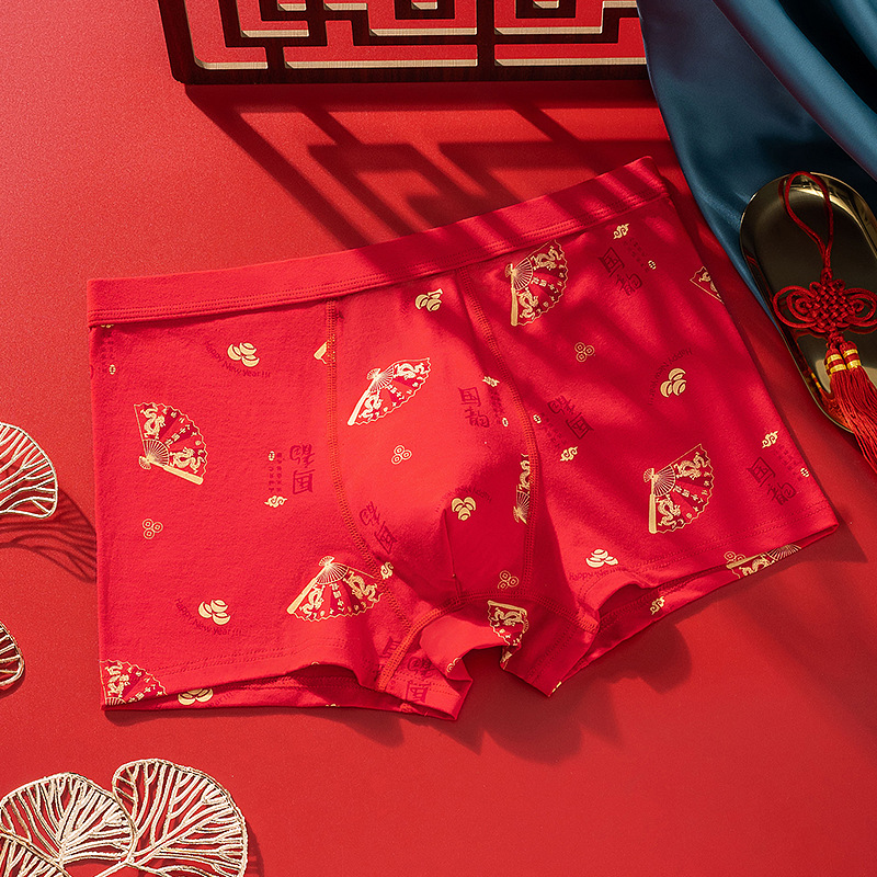 Bermingnian 빨간 남자의 속옷 순면 빨간 남자의 속옷 축제 결혼식 빨간 남자의 사각스토어 가기