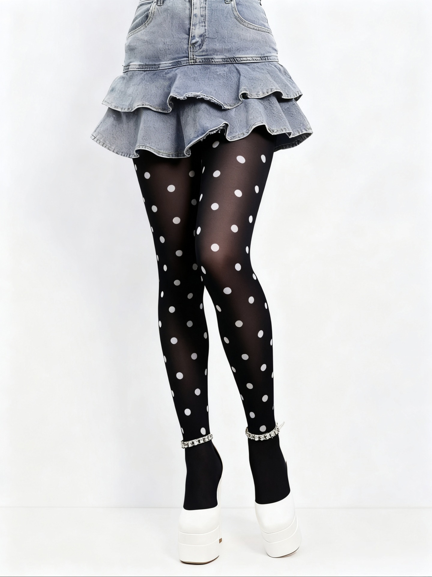패션 바닥 스타킹 물방울 무늬 인쇄 얇은 숙녀 검은 실크 물방울 무늬 스타킹 가벼운 다리 유물 제조 업체 도매스토어 가기
