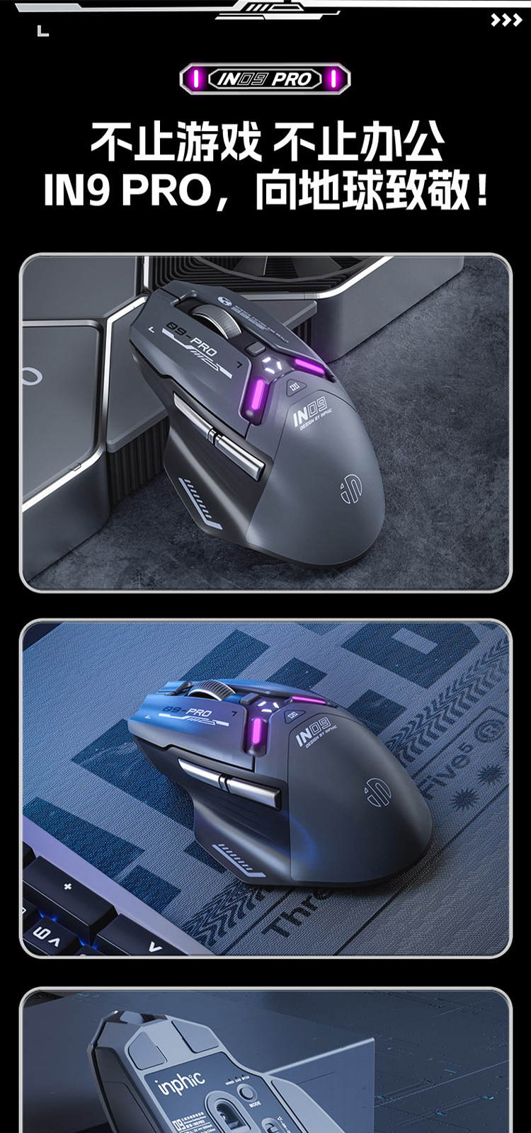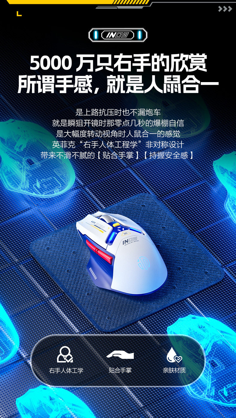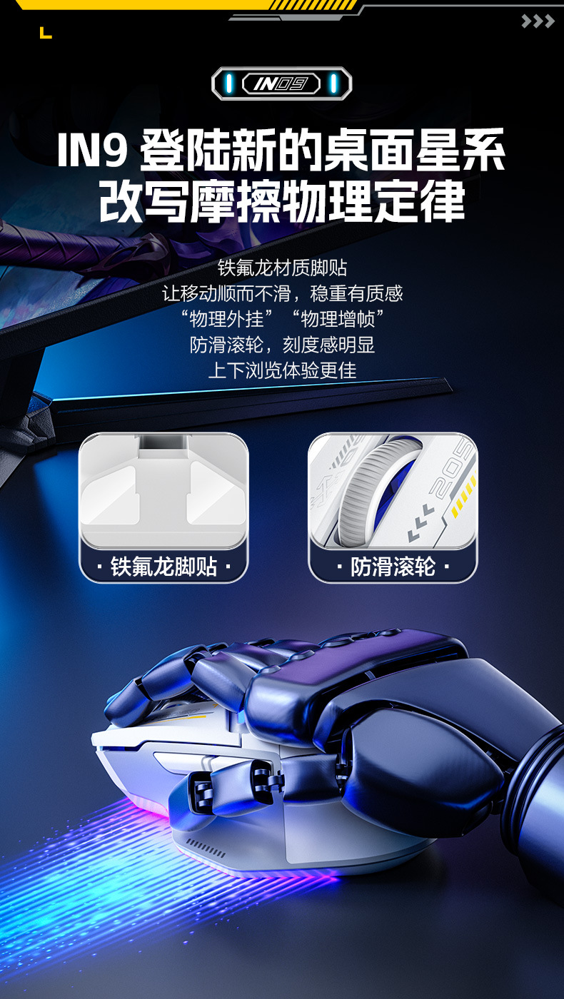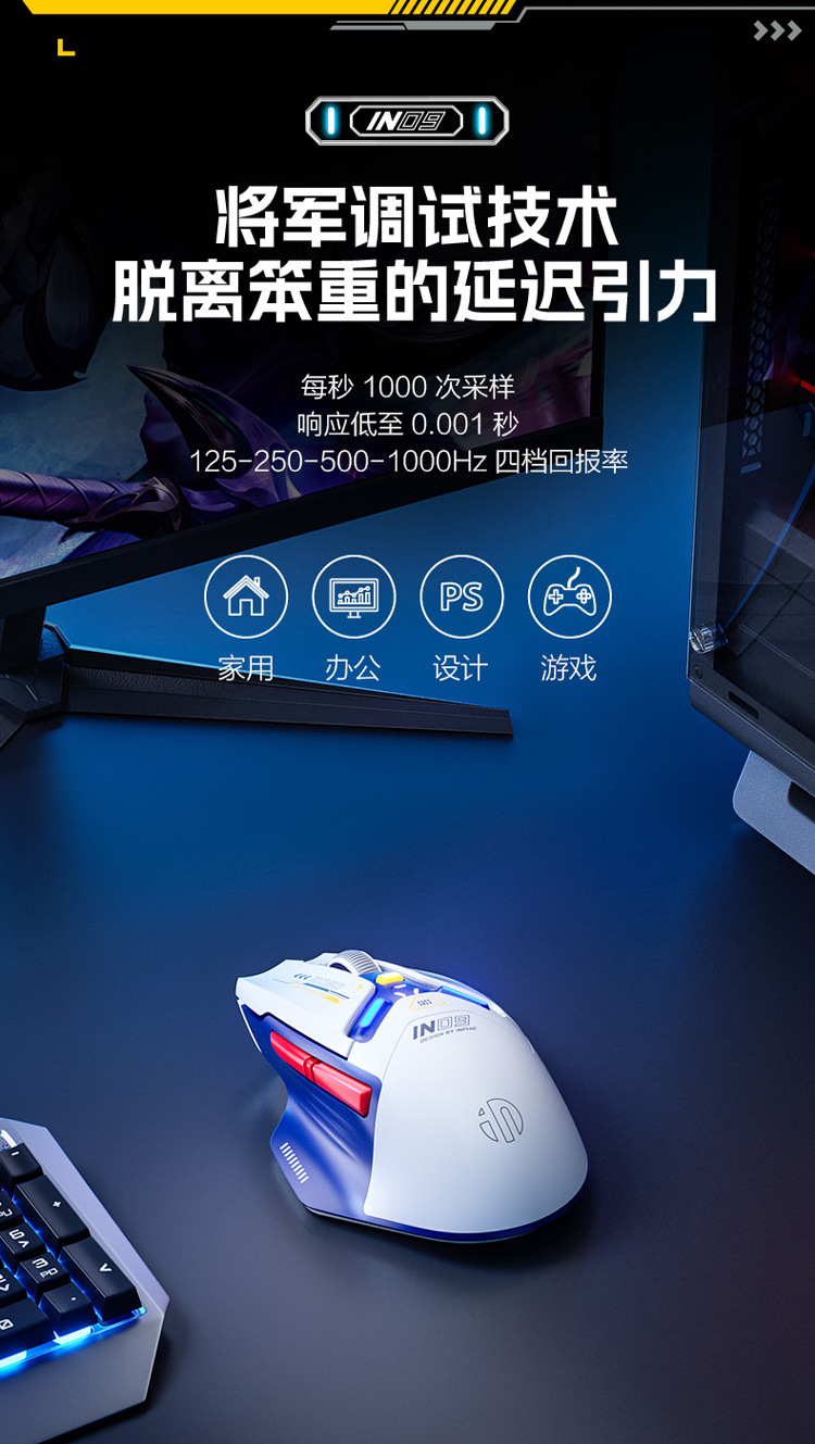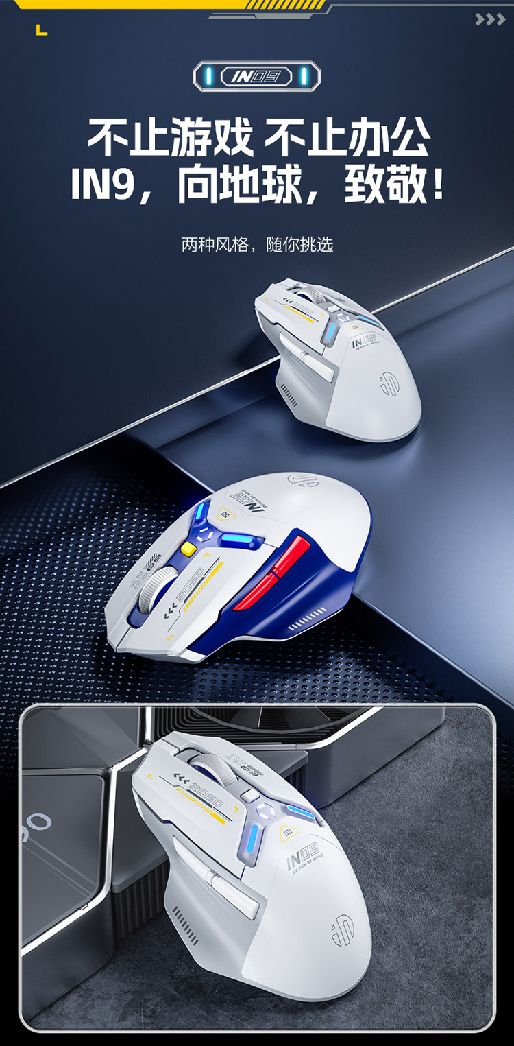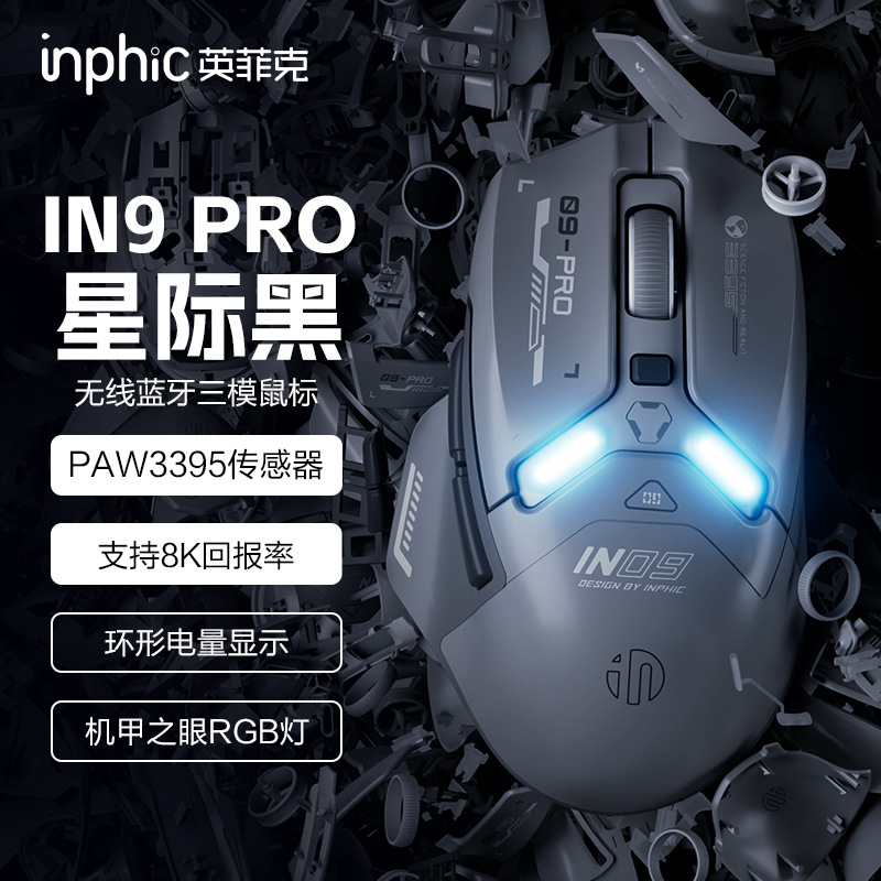 INPHIC INFIK IN9 3 모드 무선 블루투스 마우스 유선 전자 스포츠 게임 사무실 충전 PAW3395